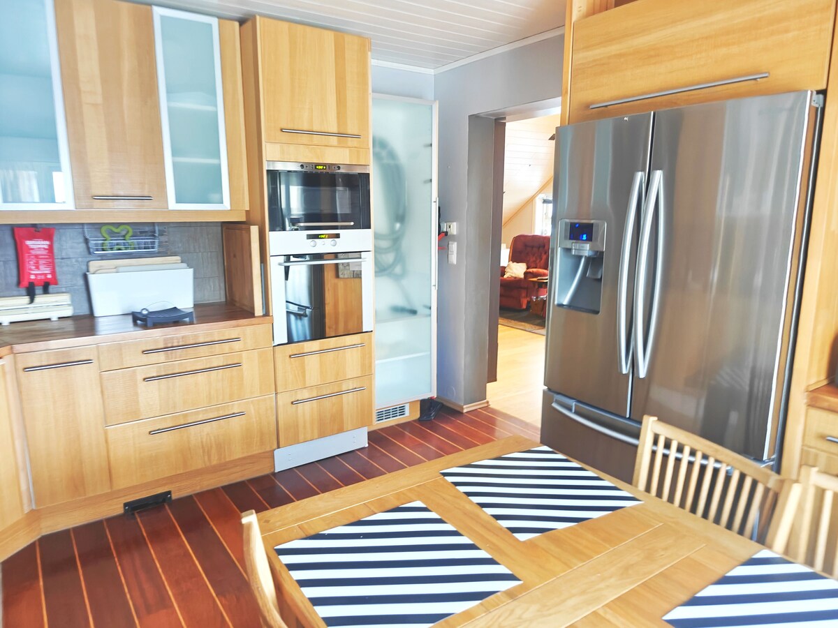 Malaking property sa tabing - dagat na puno ng mga oportunidad para sa mabuting pamumuhay at mga nakatagpo ng hindi kilalang ilang. Dito mayroon kang access sa iyong sariling pantalan na may hagdan sa paliligo. Mayroon kang sariling malaking damuhan at magandang patyo kung saan masisiyahan ka sa paglubog ng araw. Sapat na paradahan. Magandang beach sa malapit - perpektong palaruan para sa mga bata at matatanda. Mula sa pantalan, may maikling biyahe sa bangka papunta sa mga bukas na dagat. Makakakita ka ng mga isla, bangko, at napakaraming oportunidad sa pangingisda. May magagamit na bangka.