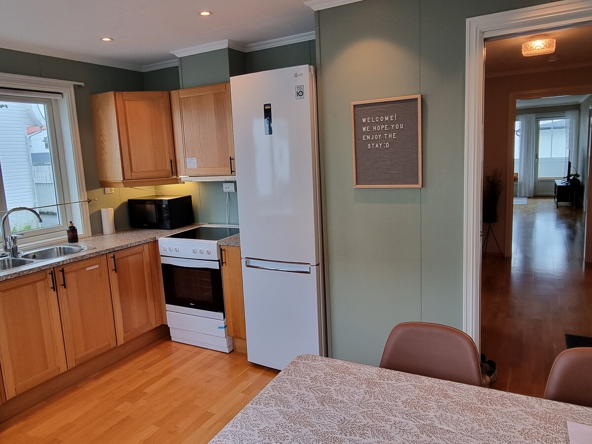 Tuklasin ang kaginhawaan at katahimikan ng aking modernong apartment, na may perpektong lokasyon para tuklasin ang lahat ng iniaalok ng Karmøy. Kung nasa business trip ka man, bakasyon, o kailangan mo lang ng weekend, mainam ang lugar na ito para sa mga panandaliang pamamalagi at mas matatagal na pamamalagi. Isa rin itong apartment na angkop para sa mga bata na nag - aalok ng travel cot. Tahimik na kapitbahayan, ngunit sa parehong oras ay sapat na sentro upang maging isang bato lamang ang layo mula sa pinakamagagandang beach, mga tindahan at mga kainan sa Norway. Kasama ang pakete ng TV at wifi mula sa Altibox. Libreng paradahan sa pribadong carport, 1 kotse.