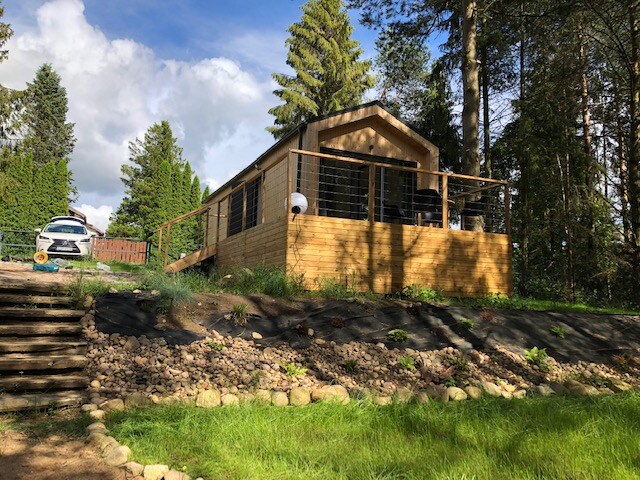 Zapraszamy do wyjątkowego domku „Lëpa” (Lipa), położonego w sercu malowniczego ośrodka "Kaszuby Tree House Center". Ten przytulny, 35metrowy kwadratowy domek, stanowi idealne miejsce na relaks i odpoczynek w otoczeniu natury. „Lëpa” to przestronny salon z jadalnią i aneksem kuchennym, które tworzą przytulną przestrzeń do spędzania czasu z bliskimi. Ogromne przeszklenia frontowe i boczne witryny umożliwiają rozkoszowanie się widokiem na otaczający las i pozwalają cieszyć się naturalnym światłem.