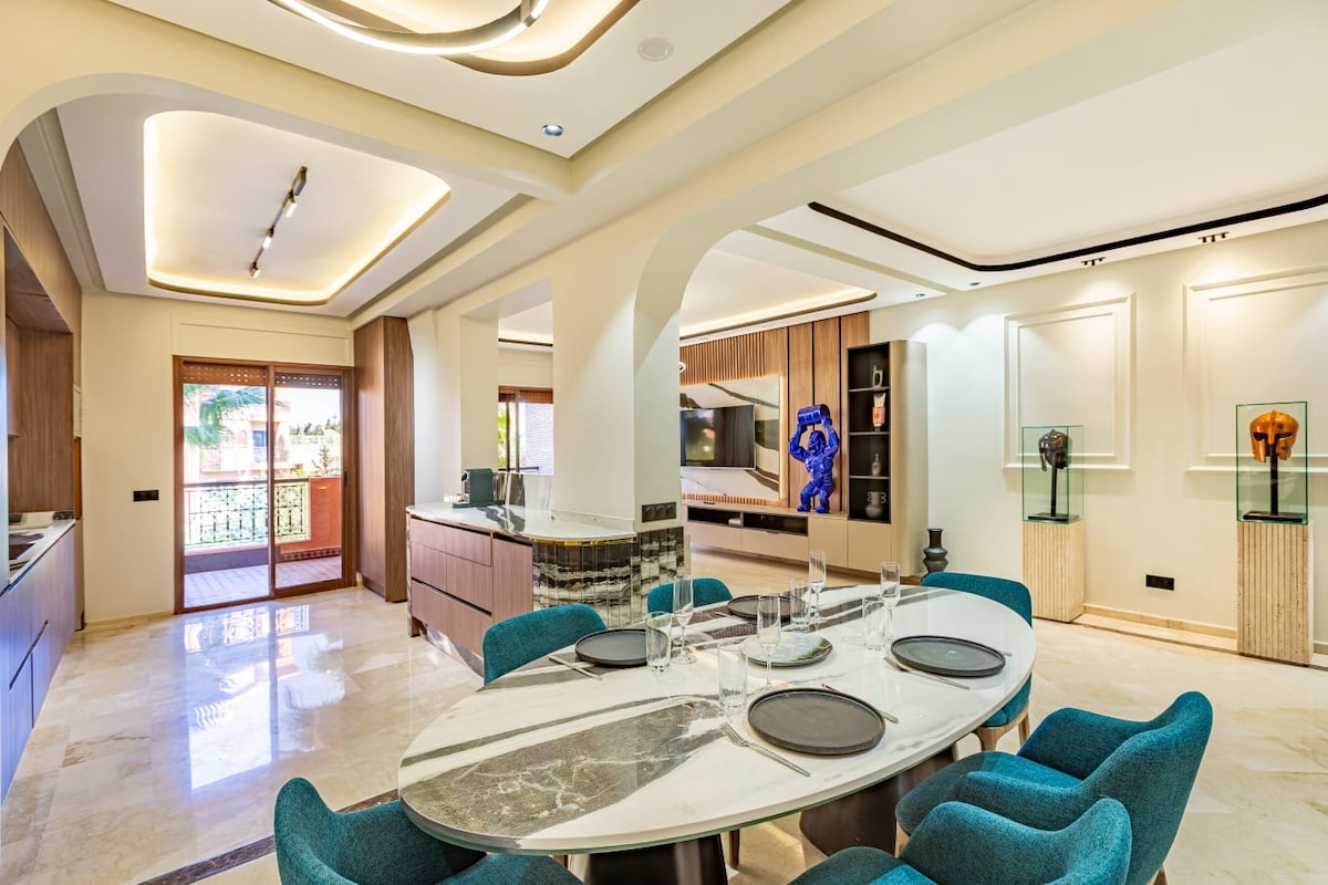 Nakakaengganyong karanasan sa isang kontemporaryong apartment - gallery. Perpektong matatagpuan sa maligaya na Golden Triangle, 15 minutong lakad papunta sa medina. Ang napaka - high - end na 140m2 na maliwanag at komportableng apartment na ito. Malapit sa mga iconic na palasyo (Mamounia, Sofitel, Casino) Prestihiyosong tirahan na may pool. Mainam para sa hanggang 5 bisita, nag - aalok ito ng 2 silid - tulugan, 3 terrace, 2 banyo at 3 banyo. Sa pagitan ng isang naka - istilong at buhay na kapaligiran, isang natatanging karanasan sa gitna ng Marrakech ang naghihintay sa iyo.