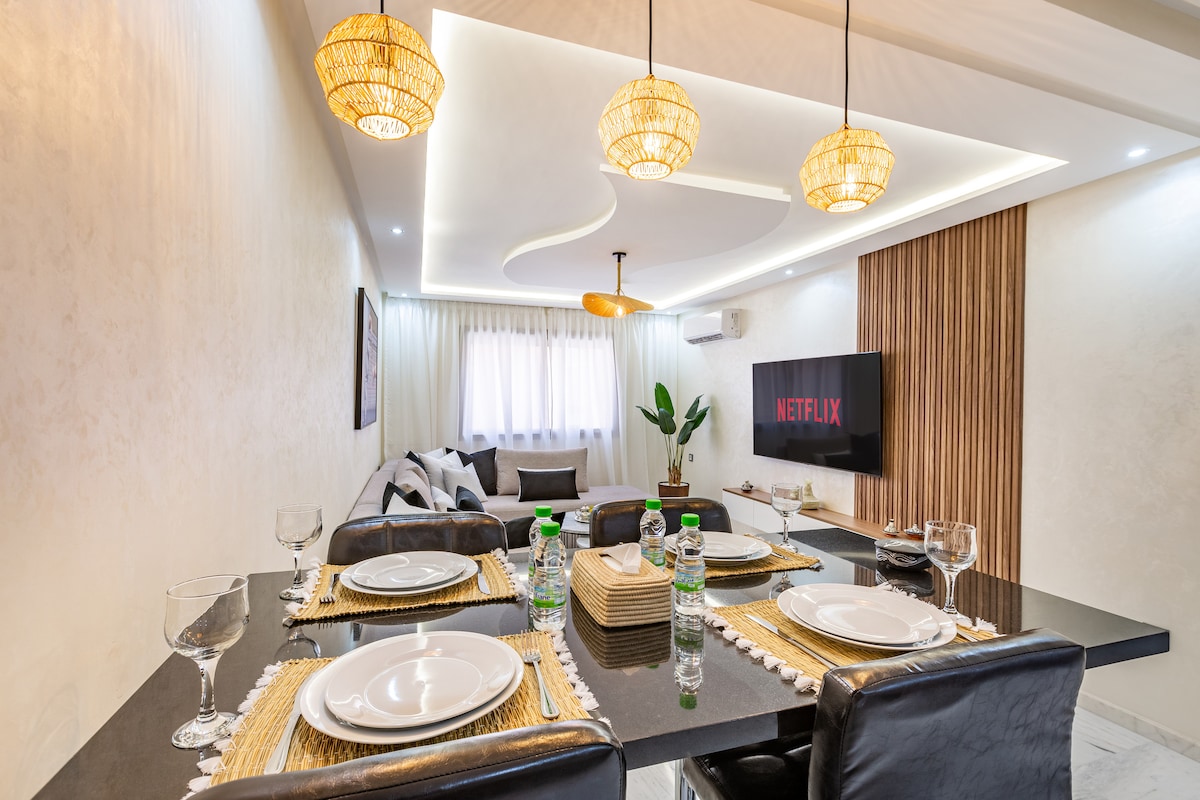 Manatili sa gitna ng Marrakech sa aming 2 silid - tulugan, 2 banyo apartment. Tangkilikin ang high - end na Simmons bedding, high speed WiFi (fiber optic) at modernong palamuti na may etnikong twist. Kumpleto sa gamit na kusinang kumpleto sa kagamitan, naka - istilong bathtub, at Italian shower. Maigsing lakad mula sa Jemaa el - Fna square, Plazza, at Carré Eden. NB: Hindi pinapayagan ang mga mag - asawang walang asawa na Moroccan.
