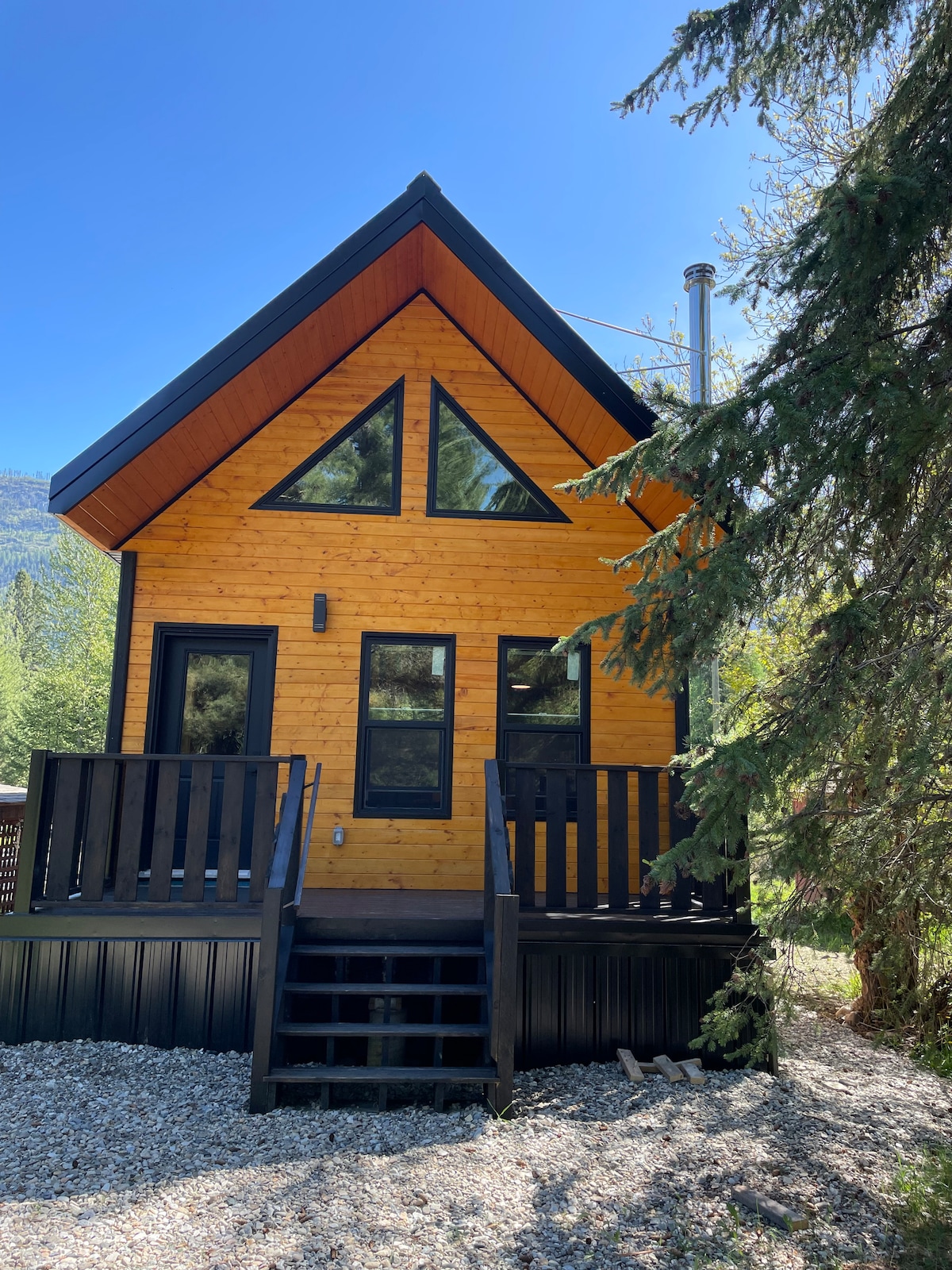 ***Paumanhin, hindi namin puwedeng i-host ang mga aso*** Modernong cabin, perpekto para sa mga mahilig sa kalikasan, nagsi-ski at nagso-snowboard, nagso-snowmobile, nagma-mountain bike, nagha-hike, o naglalakbay sa kalapit na Nelson. Nakaharap ang maaraw na deck sa nakamamanghang puno ng pine at ilang hakbang lang ang layo nito sa isang aktibong wildlife game trail. Nakatayo sa pitong acre na tahimik na lugar, may mga elk, usa, kuneho, dalawang uwak, at paminsan‑minsang wild turkey sa property na ito—kaya talagang nakakatuwang magbakasyon sa bundok dito.