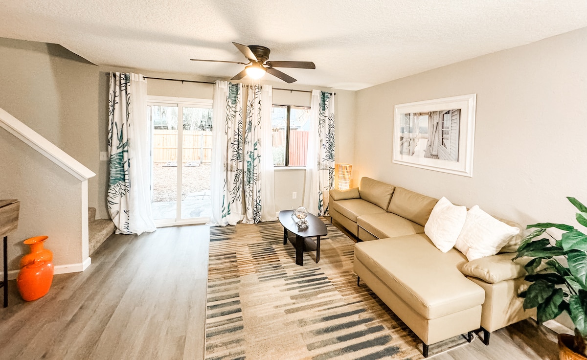 Magandang vibes lang sa La Casita. Naka - istilong, mapayapa at pribado. Pagdating sa pagpili ng iyong tuluyan na malayo sa tahanan - mahalaga ang mga detalye. Nilagyan ang kusina ng refrigerator, microwave, air fryer, at hot plate. Ibinigay ang kape, sabon sa kamay, sabong panghugas ng pinggan, shampoo at conditioner. Puno ng laki ang kama. Nakapaloob na bakuran. Napakahusay na sentral na lokasyon. 10 minuto papunta sa highway, St. John's Town Center at UNF. 20 minuto papunta sa mga beach, downtown at Mayo. Bawal manigarilyo sa loob.