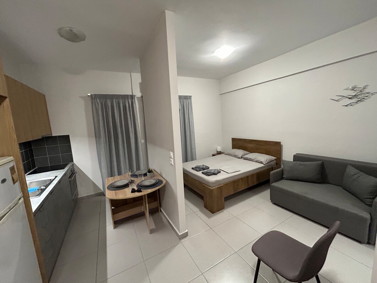 A beautiful fully renovated 1st floor condo (30 sqm) in a peaceful neighborhood at Hagia Sophia district in Patras. With 1 double bed and a sofa turning to double bed, this 1-room apartment offers an ideal choice for single visitors, couples or families with small kids. Very well served by public transport both for the center of the city (about 1.8 Km away) and Rion / University of Patras (about 5.5 Km away). Free parking available in the vicinity of the apartment.