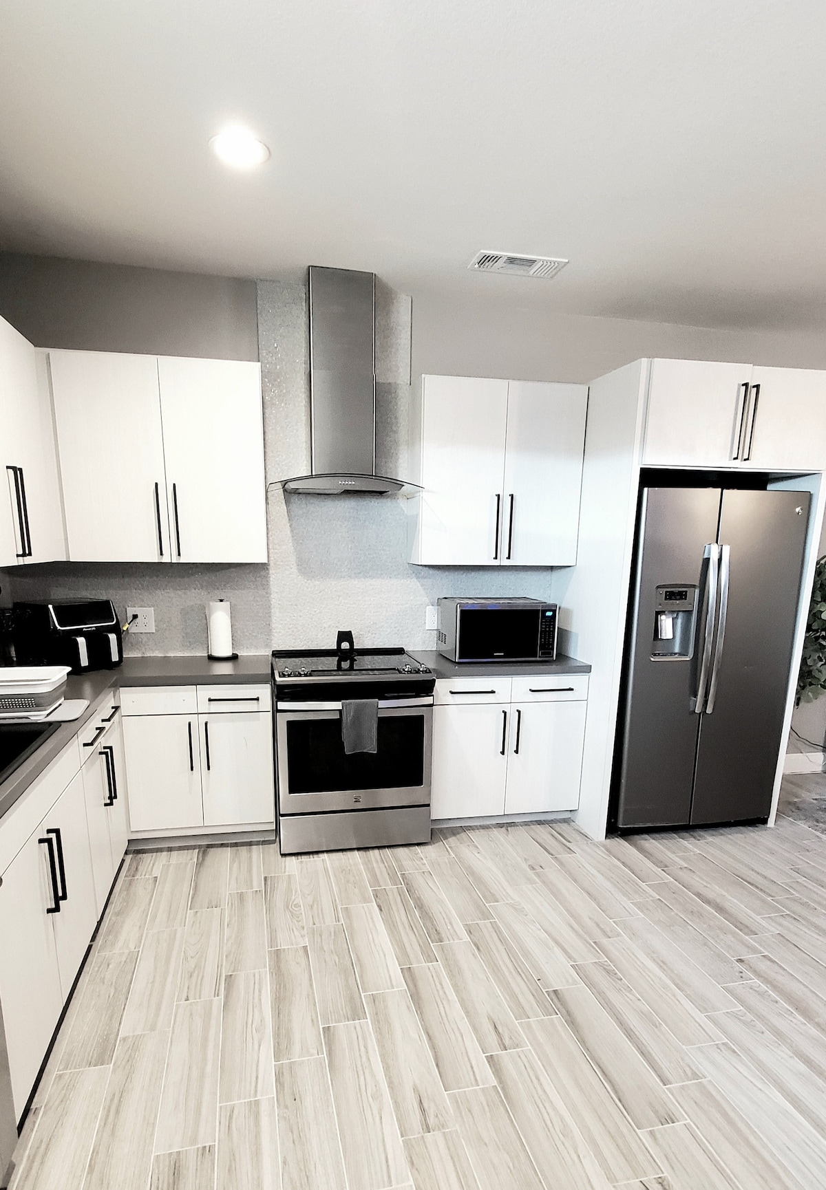 Kalimutan ang iyong mga alalahanin sa moderno, maluwag, kumpleto sa gamit na Casita. I - enjoy ang lahat ng amenidad ng hotel nang walang aberya sa paghihintay sa pag - check in o sa pagmamadali ng lahat ng iba pang bisita. May sariling pasukan at pinaghahatiang Patio ang aming tahimik na Casita. Bibigyan ka ng code para sa sariling pag - check in sa araw ng iyong pagdating pagkalipas ng 1:00PM. Mga panseguridad na camera sa property sa Parking Area at Airbnb Patio. 24 na oras na pagsubaybay.