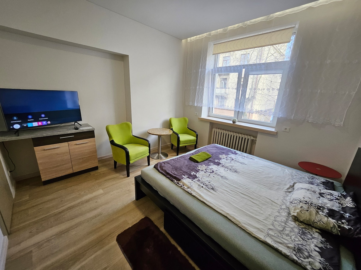Sariling pag - check in mula 15h. Mula sa magandang lugar na matutuluyan, madali mong mapupuntahan ang lahat ng pinakamahalagang lugar. Libre ang pagparada sa kalye sa sentro ng Kaunas sa tabi ng bahay‑pahingahan mula 8:00 PM hanggang 8:00 AM.