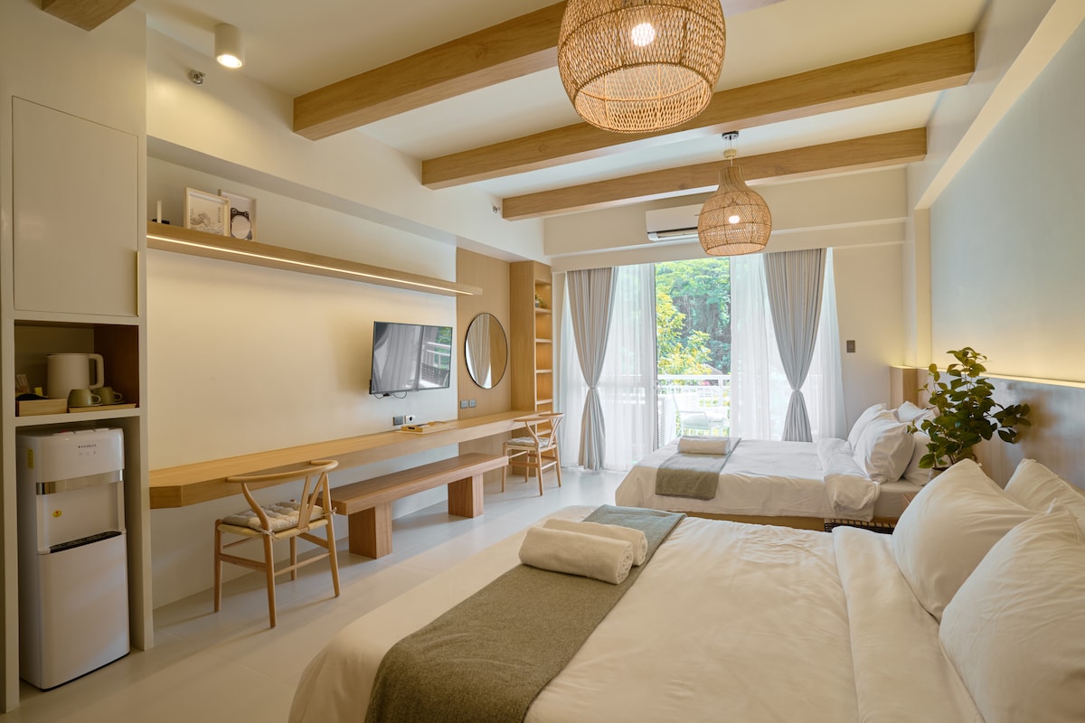 Maligayang pagdating sa Yugen Suites, ang iyong tahimik na bakasyunan sa tabi ng dagat, kung saan natutugunan ng minimalist na disenyo ng Japan ang likas na kagandahan ng Mt. Pico De Loro. Matatagpuan sa ika -2 palapag ng Carola B Building sa loob ng magandang Hamilo Coast, ang bagong inayos na apartment na ito ay isang 47sqm studio bedroom na may ensuite na kusina at paliguan na idinisenyo na may malinis at natural na estetika. — KAPASIDAD — Nililimitahan ng mga alituntunin ng Pico ang kapasidad ng kuwarto sa 6 na pax, na kinabibilangan ng mga batang 1 taong gulang pataas. Walang pagbubukod.