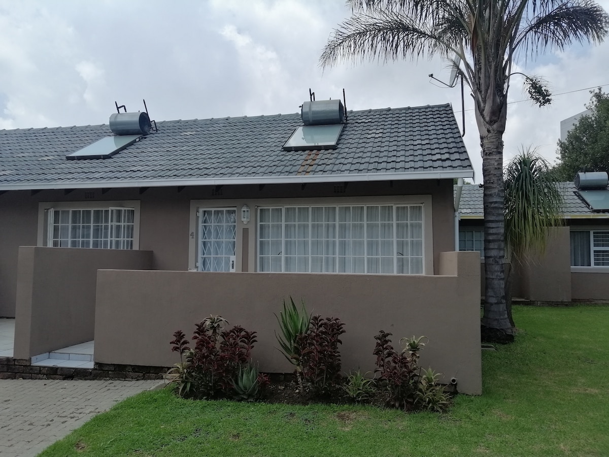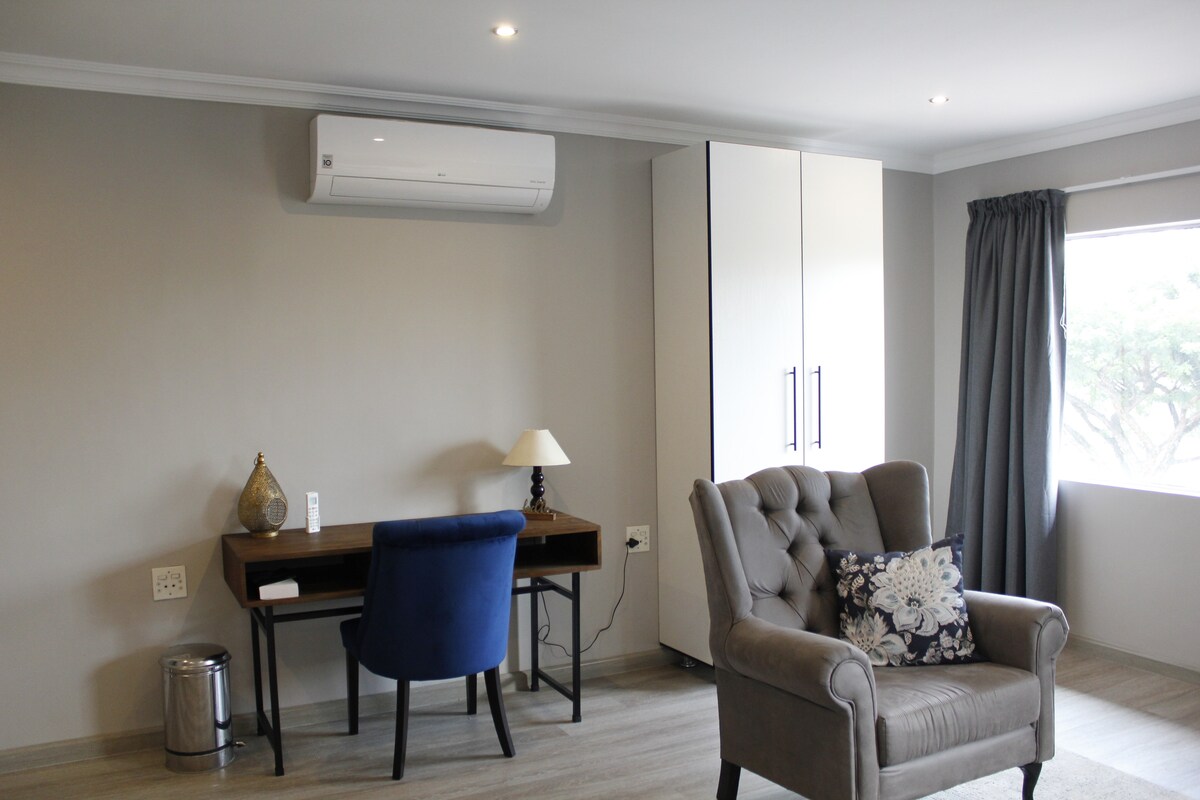 Ganap na may kumpletong kagamitan na moderno, self - catering na ligtas at kumpletong kumpletong pribadong studio apartment, na may solar power, kaya hindi ka maaapektuhan ng mga pagkawala ng kuryente! Matatagpuan sa isang tahimik na ligtas na kapitbahayan, malapit sa lahat ng pangunahing shopping mall at lugar ng libangan. Ang tuluyan ay ligtas, kalmado at naka - istilong, bagong na - renovate at perpekto para sa mga negosyante o naglalakbay na mag - asawa. Tandaang mahigpit na hindi naninigarilyo ang apartment na ito. May mga magiliw na aso sa property na gustong salubungin ang mga bisita pagdating nila.