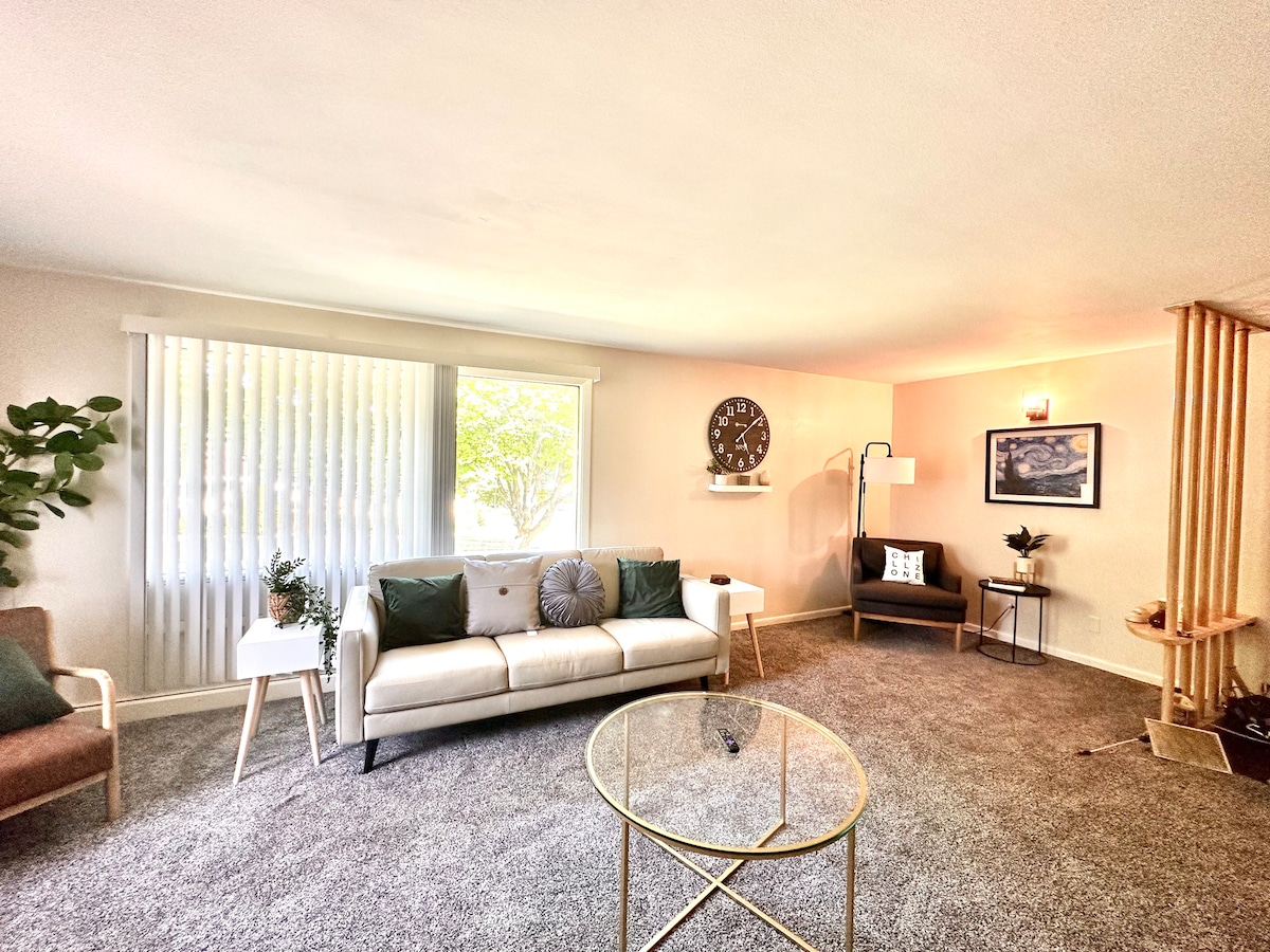 Tuklasin ang pinakamagandang relaxation at kaginhawaan sa kaakit - akit na matutuluyang bakasyunan na ito sa Racine. Perpekto para sa isang bakasyon ng pamilya, romantikong bakasyon, o weekend trip kasama ang mga kaibigan. Nag - aalok ang 2 - bdrm, 2 - bath na ito ng nangungunang lokasyon na 2 bloke lang ang layo mula sa Lake Michigan at sa lugar ng downtown. Pumasok at tumuklas ng magandang tuluyan na may lahat ng amenidad na maaaring kailanganin mo para sa iyong pamamalagi. Magrelaks sa komportableng sala o magsaya sa kusinang may kumpletong gourmet.