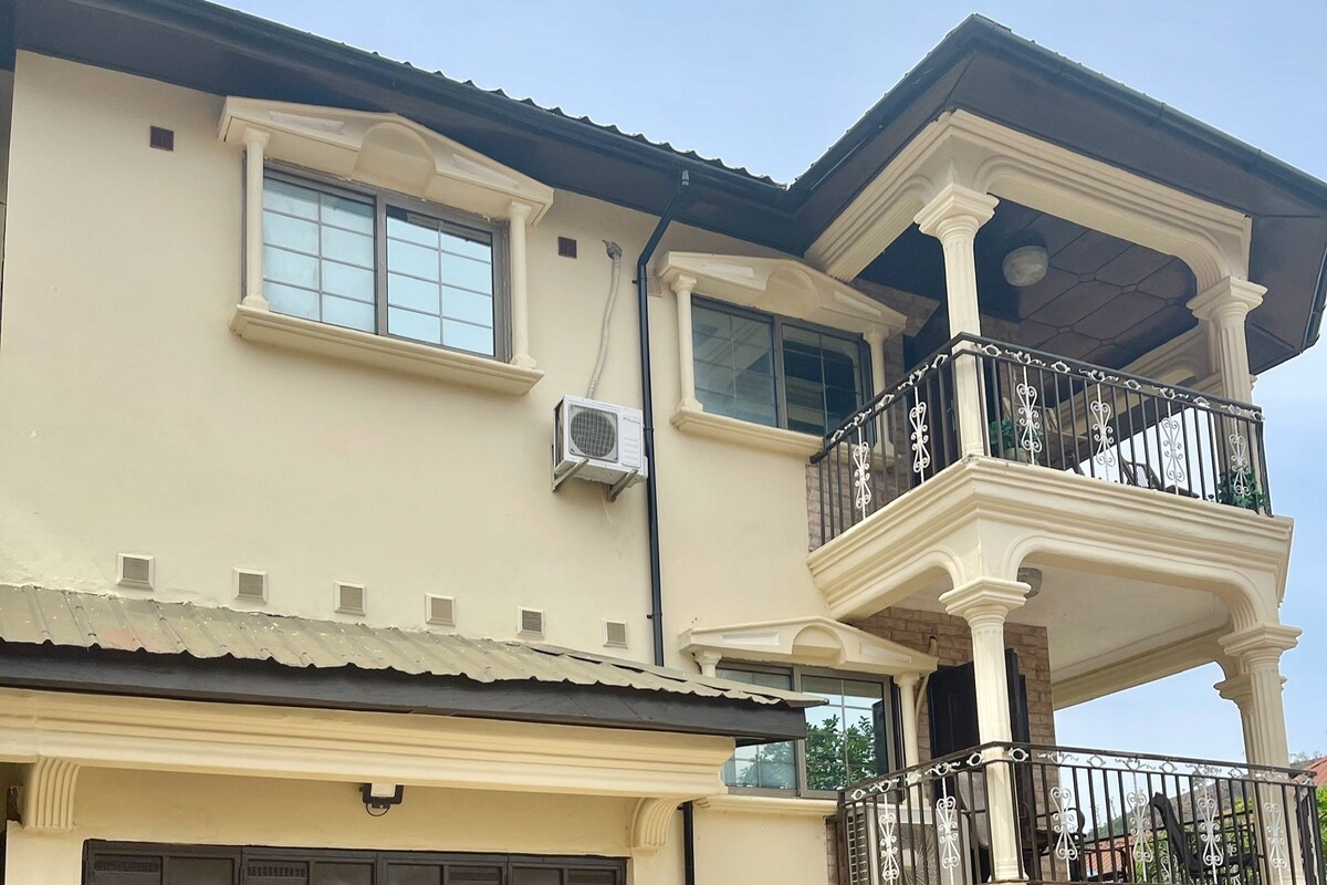 Kalimutan ang iyong mga alalahanin sa maluwag at tahimik na lugar na ito. Magandang dekorasyon at kumpletong kagamitan na modernong 3 bed house na may magandang tanawin ng kabundukan Perpekto para sa: Mga malayuang manggagawa, expat, biyahero, at bisita sa negosyo. Wi - Fi Palikuran ng Bisita AC Mga Kagamitan Solar power Maluwang na paradahan Security guard CCTV Elektrisidad Tandaang nasa tuktok ng matarik na burol ang Havillah Court pero mapupuntahan ito sa pamamagitan ng kalsadang may palitada mula sa pangunahing highway. Kailangan mo ng magandang kotse na kayang umakyat sa mga burol.