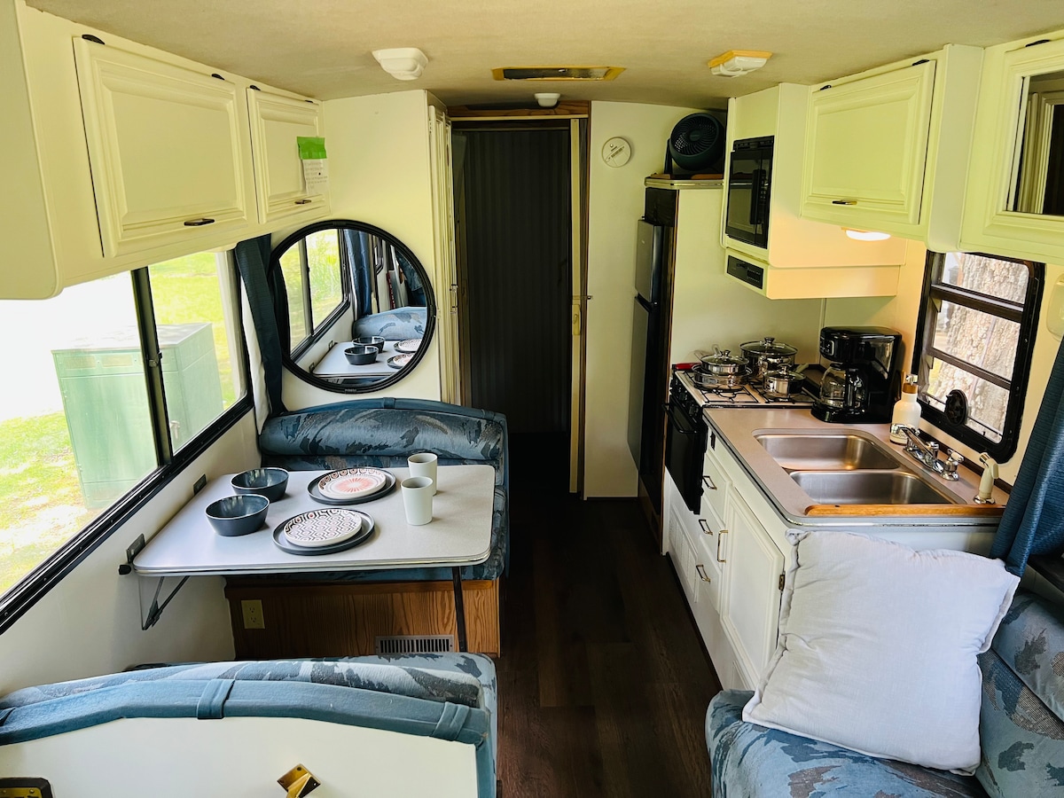 Maluwag at maayos ang plano ng camper - Jayco 2018, 27ft. May isang komportableng queen bed sa kuwarto at sala na may maliit at komportableng couch na perpekto para sa bata. Ang camper ay may maluwang na banyo na may shower at maraming imbakan. Maaaring pahintulutan ang mga alagang hayop sa indibidwal na batayan lamang - kinakailangan ang kahilingan. Ilalapat ang karagdagang bayarin.