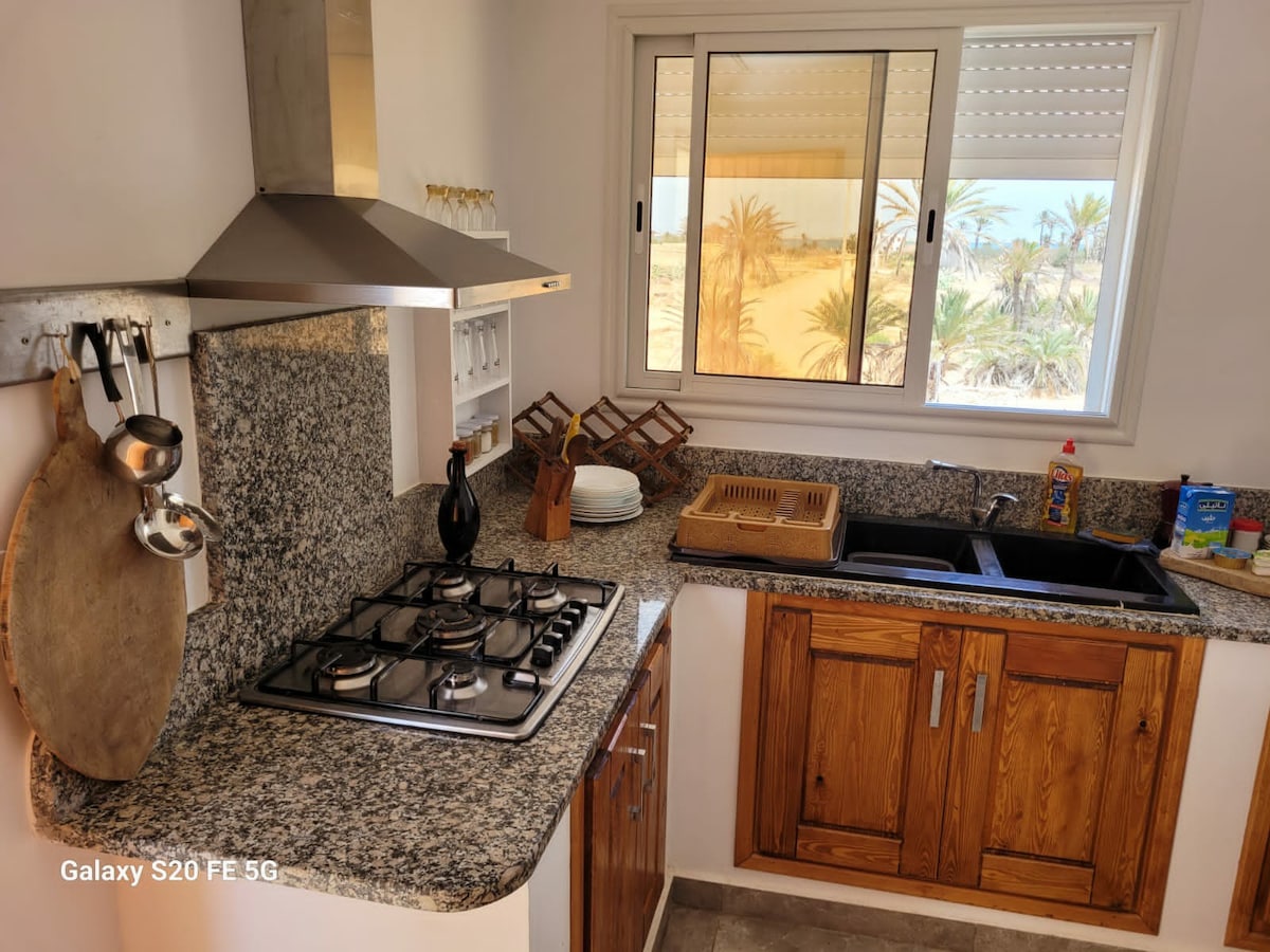Masiyahan sa iyong bakasyon sa isang naka - istilong, mataas na kalidad na kagamitan beach apartment sa isang direktang lokasyon ng dagat sa magandang isla ng Kerkennah • Dalawang silid - tulugan • Modernong sala na may air conditioning • Kusina na kumpleto sa kagamitan • Malaking terrace na may dining area at barbecue area Ilang hakbang lang mula sa beach, mainam ang lokasyon para sa libangan, kasiyahan sa paliligo, at tahimik na gabi sa tabi ng dagat. Ang kanilang mga host ay magiliw, matulungin at nagsasalita ng Arabic, French, English at German
