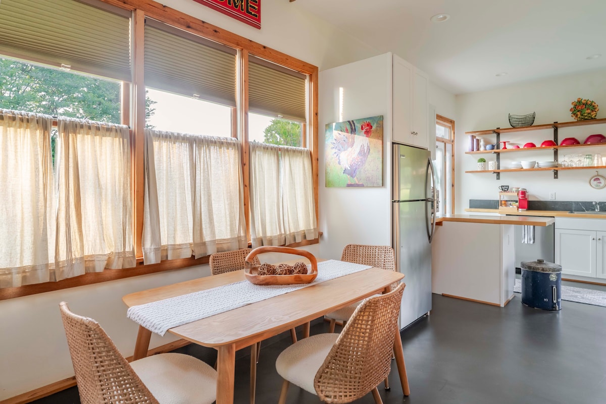 Set in the heart of Wine Enthusiast’s Wine Region of the Year, this newly renovated 2-bedroom, 850 sq/ft terrace level flat with separate entrance, is located in a private setting in the Keswick area. Close to Downtown Charlottesville, we are adjacent to Clifton Inn and Glenmore and minutes to Keswick Hall. After exploring many of Virginia’s wineries, breweries, and historical sites, kick your feet up between the trees in the hammock or share your adventures online with our high speed Wi-Fi.