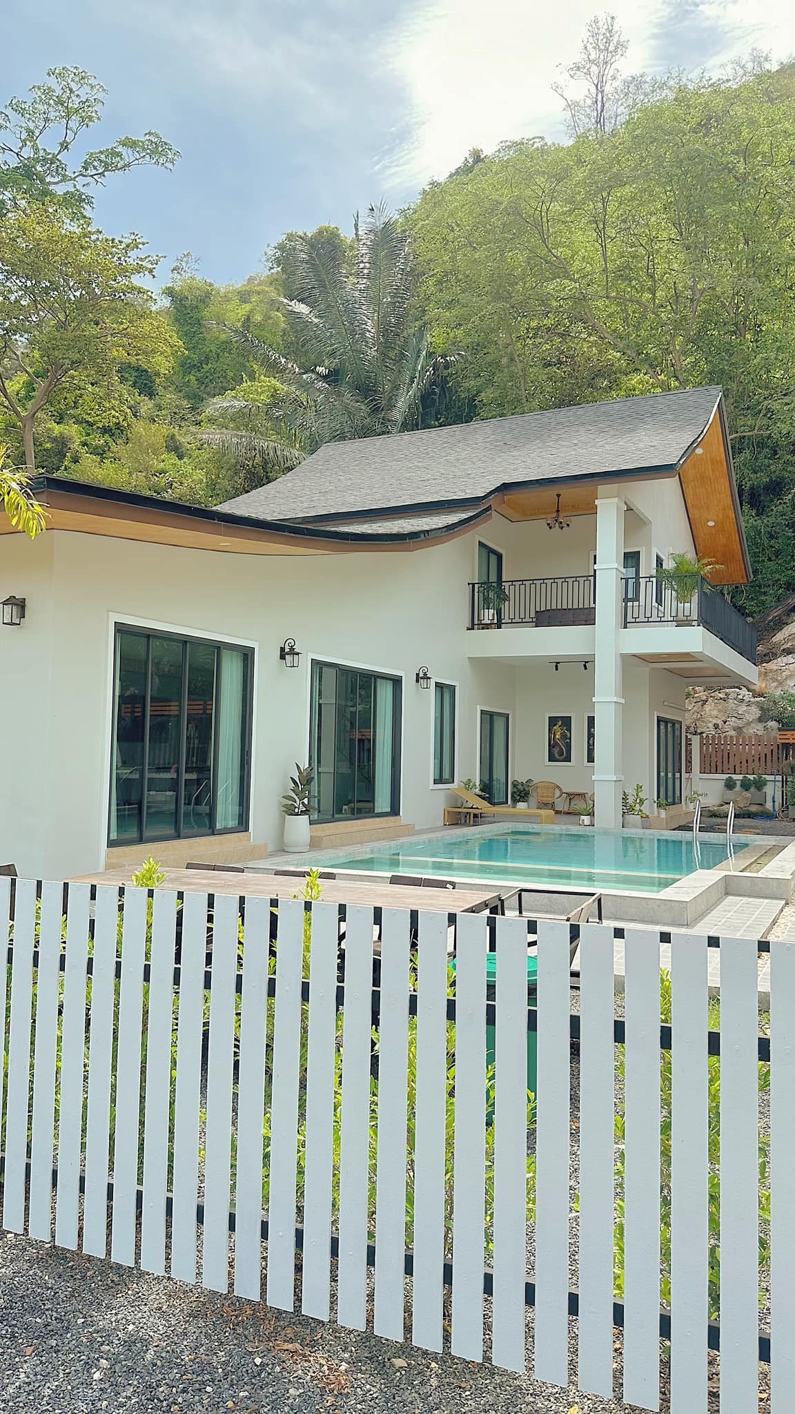 2014 Nakabuo ng magagandang luxury house na may bagong common swimming pool at malaking sun deck na may BBQ area. Available din ang Scandinavian Sauna para sa paggamit ng mga customer. Western style na kumpleto sa kagamitan at maluluwag na bahay sa magagandang palm garden na may mga tanawin ng bundok. Mapayapa at ligtas na lugar. Ang mga bahay ay may fiber optic WIFI, Air Con,, Big SMART TV, maraming libro, laro, Magandang Kusina, Tinutulungan at ginagabayan namin ang lahat ng kailangan mo.