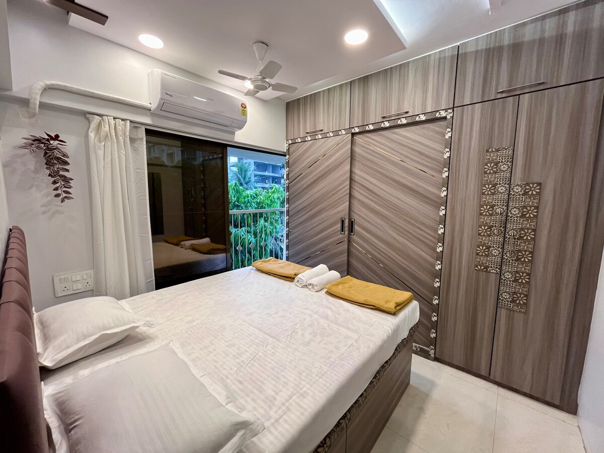 Malapit sa lahat ang iyong pamilya kapag namalagi ka sa sentral na lugar na ito. Ito ay isang 1 Silid-tulugan, Sala, Kusina na kumpleto sa gamit na Apartment malapit sa Andheri Subway. May mga AC sa Silid - tulugan at Sala. Mayroong 2 buong banyo at kumpleto sa gamit ang kusina. Gustong - gusto naming paglingkuran ang aming mga bisita sa kanilang pinakamataas na antas ng kaginhawaan. Ang aming Apartment ay may 24 na oras na Caretaker na available sa tawag. Nagbibigay kami ng mga sobrang komportableng kutson.