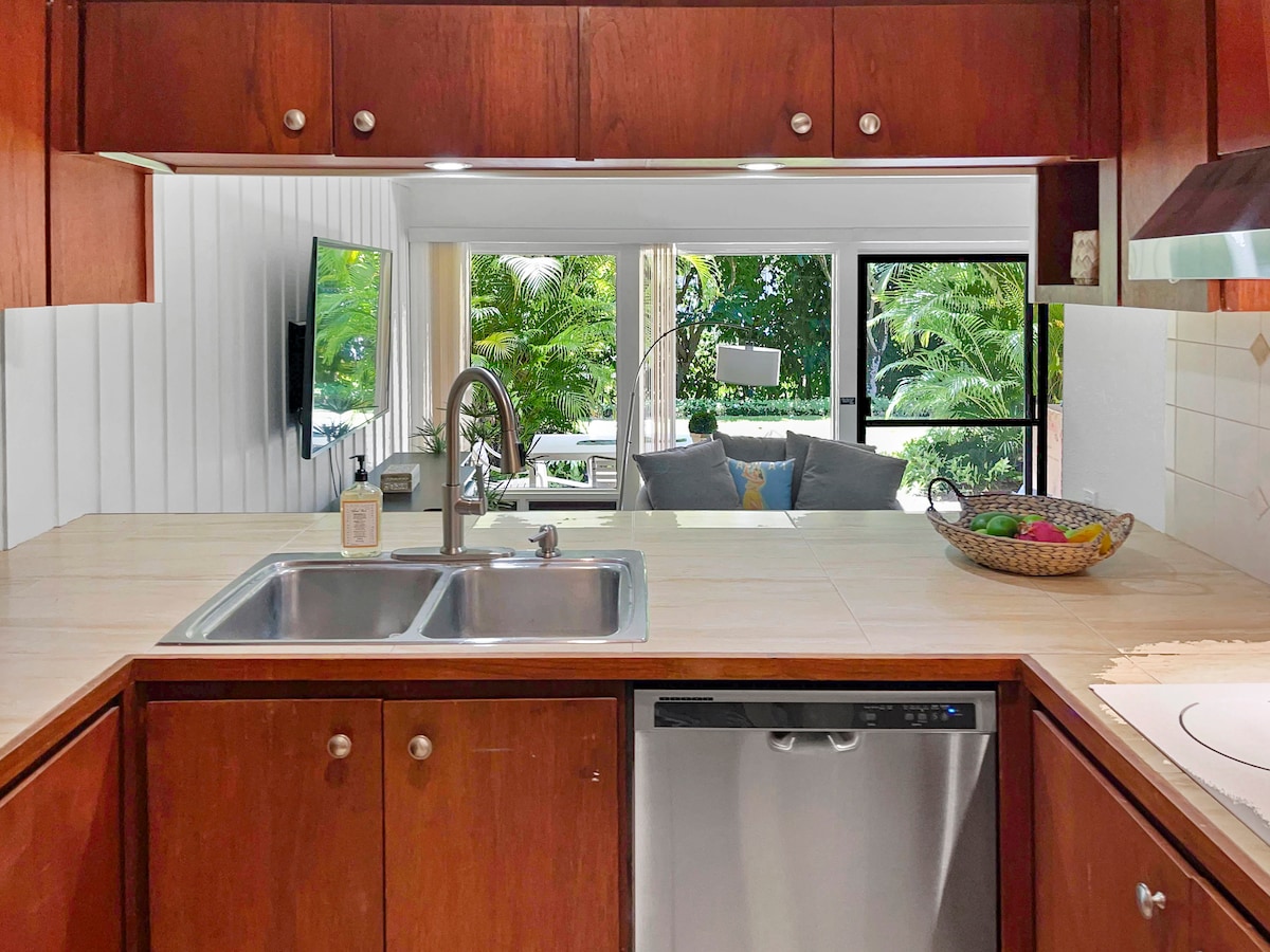 Nagbubukas ang Ground Floor sa kalikasan, naamoy ng iyong mga paa sa damuhan ang mga bulaklak. Ang Kiahuna Plantation ay isang ocean front resort na may rolling green landscaping, mabangong bulaklak, mga puno ng Mangga, Koi pond, at access sa isang high end health club. Mga istasyon ng pag - ihaw, labahan, pool w/slide, spa, masasarap na restawran at coffee shop. Malapit lang ang snorkeling, mga pawikan kada gabi sa baybayin. Nakatira ako sa isla, available ako sa anumang dahilan. Huwag mag - atubiling magtanong sa akin, mabilis akong tutugon. Gusali 16