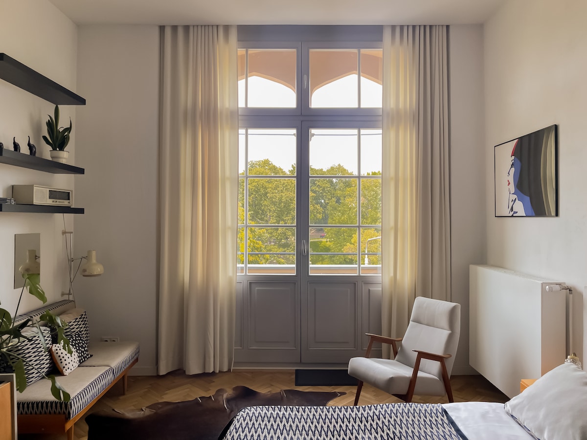 Maliwanag at maluwang na apartment sa tabi ng parke at ilog