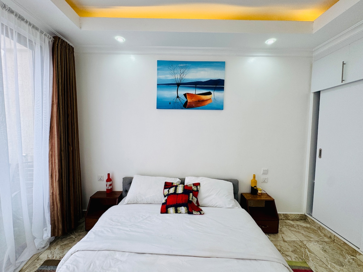 Its a kind of fully equipped, new and modern apartment, are located 7 minutes from MTN Center Nyarutarama and 5 minutes from Kigali Golf Ressort, with 24/7 security et illimited free Wifi and close to proximity of supermarkets, cafes, restaurant and fitness club. This apartment offers a fully equipped kitchen and it'a perfect for short or long term business or leisure travelers and couples who seek a comfortable and secure stay in the calme and warm.
