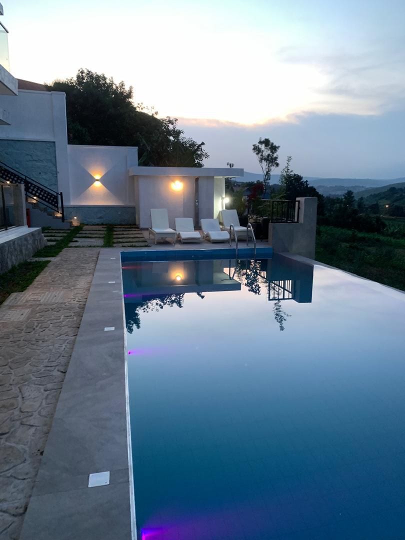 Discover the meaning of luxury at an exclusive Kigali address. Enjoy this new luxury apartment & pool, steps from Kigali's 18 hole golf course. Featuring 3 air conditioned rooms. 5 star appliances, exquisite modern furnishings, comfortable memory foam mattresses in ensuite rooms, this home exudes tasteful sophistication throughout. Located in Kigali's premiere neighbourhood of embassies, HNWI, NGO's etc. It is also conveniently located close to Kigali airport, restaurants and the city centre.