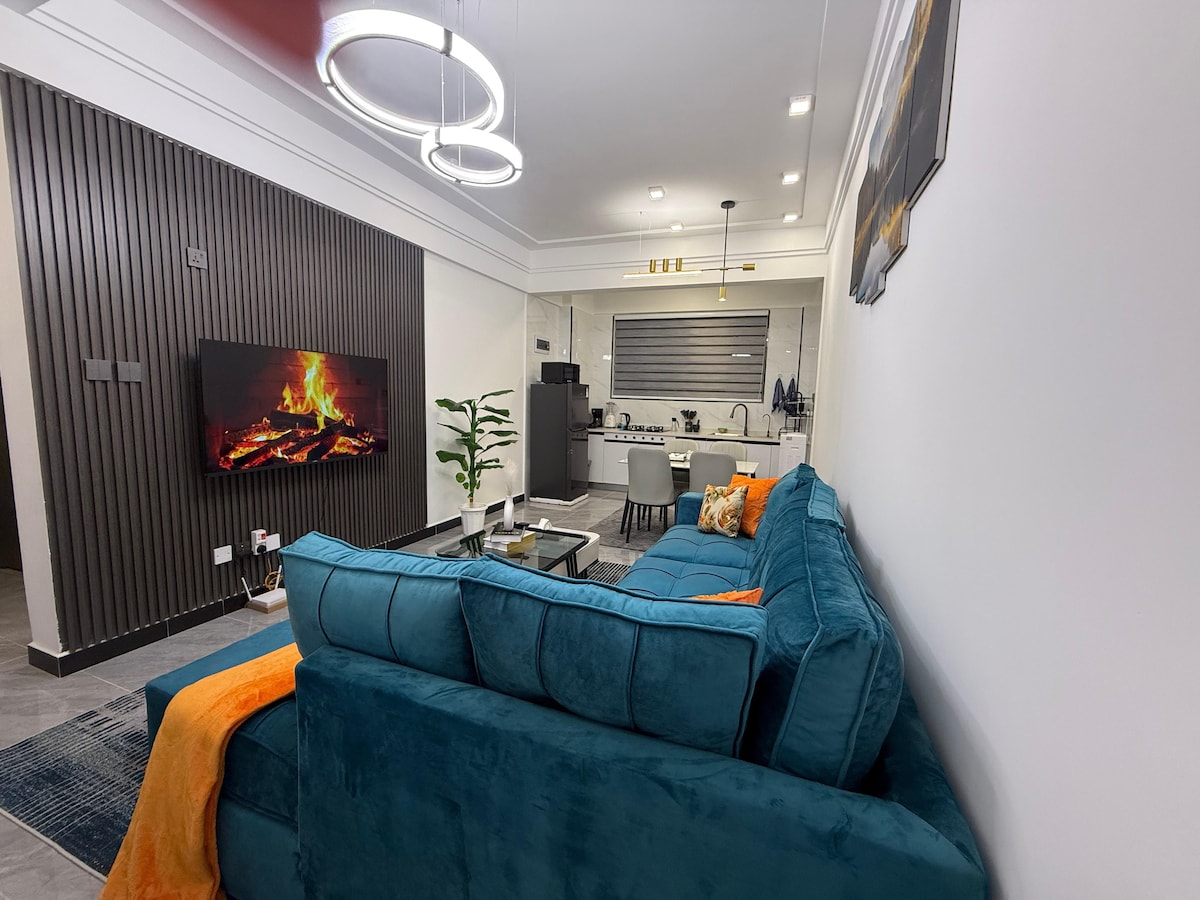 Maligayang pagdating sa Maskani sa ika -16 , ang iyong kanlungan sa kalangitan. Pinagsasama ng modernong apartment na ito ang kaginhawaan, estilo, at mga nakamamanghang tanawin ng skyline ng Nairobi. Ang mga maliwanag at maaliwalas na interior na may malalaking bintana ay lumilikha ng mainit at nakakaengganyong lugar para sa trabaho at pagrerelaks. Sa pamamagitan ng araw, tamasahin ang natural na liwanag na dumadaloy sa; sa gabi, magpahinga habang kumikislap ang mga ilaw ng lungsod sa ibaba. May access sa pool, gym, at pangunahing lokasyon malapit sa mga mall at restawran, muling tinukoy ang marangyang pamumuhay.