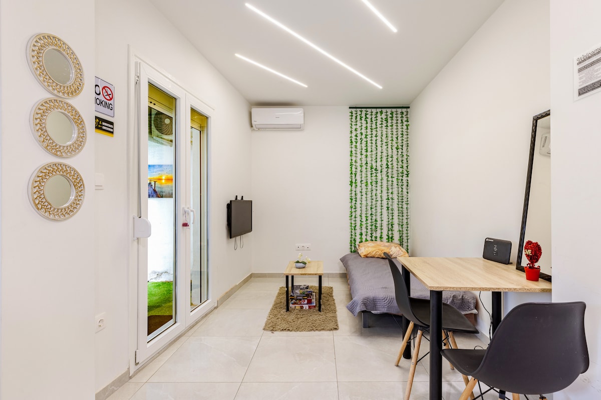 Mainam ang MARE para sa mga bisitang naghahanap ng maaliwalas, pribado, at komportableng tuluyan sa tahimik na hardin. May kuwarto, pribadong banyo, at munting kusina sa studio. Perpekto ang tuluyan para sa mga mag‑asawa o solong biyahero na nagpapahalaga sa pagiging simple, kalinisan, at modernong kaginhawa. May pribadong terrace na may tanawin ng hardin, na nag‑aalok ng tahimik na outdoor space para magrelaks, mag‑enjoy sa kape sa umaga, o magpahinga sa gabi. Tumakas para kalmado ang pag - book ng Suite Mare ngayon.