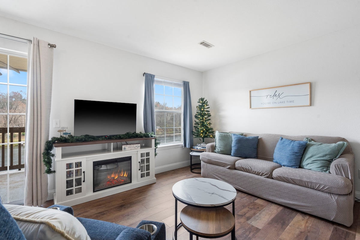 Tumakas sa Lakefront Penthouse Retreat na ito sa Table Rock Lake, na nag - aalok ng mga walang harang na tanawin sa itaas na palapag at perpektong setting para sa romantikong bakasyunan, bakasyon ng pamilya, o biyahe ng mga batang babae (o mga lalaki kung gagawin nila iyon)! Ilang minuto lang mula sa Silver Dollar City, Dogwood Canyon, at 30 minuto mula sa Branson Strip. Masiyahan sa mga kisame, kumpletong kusina, sofa sleeper, washer/dryer, at pribadong deck na may mga nakamamanghang tanawin ng lawa. Makadiskuwento nang 10% sa mga tiket kapag nag - book ka sa condo na ito. I - unwind, tuklasin, at gumawa ng mga pangmatagalang alaala!