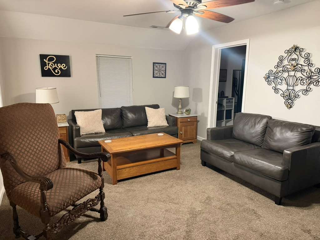 Isang moderno, ngunit komportable, 562 square.-ft. loft apartment na may kumpletong kusina at paliguan, queen bed (na may Winkbeds Luxury Firm mattress)isang twin Murphy Bed / desk, sala, walk - in closet, FireStick, Roku, DVD player, WiFi at higit pa. Tandaang nasa likod - bahay at bahagi ng aming tuluyan ang kamalig, kaya hindi namin pinapahintulutan ang madaliang pag - book. Alam naming medyo masakit ito, pero sana ay maunawaan ng lahat dahil nakatira rin kami rito.