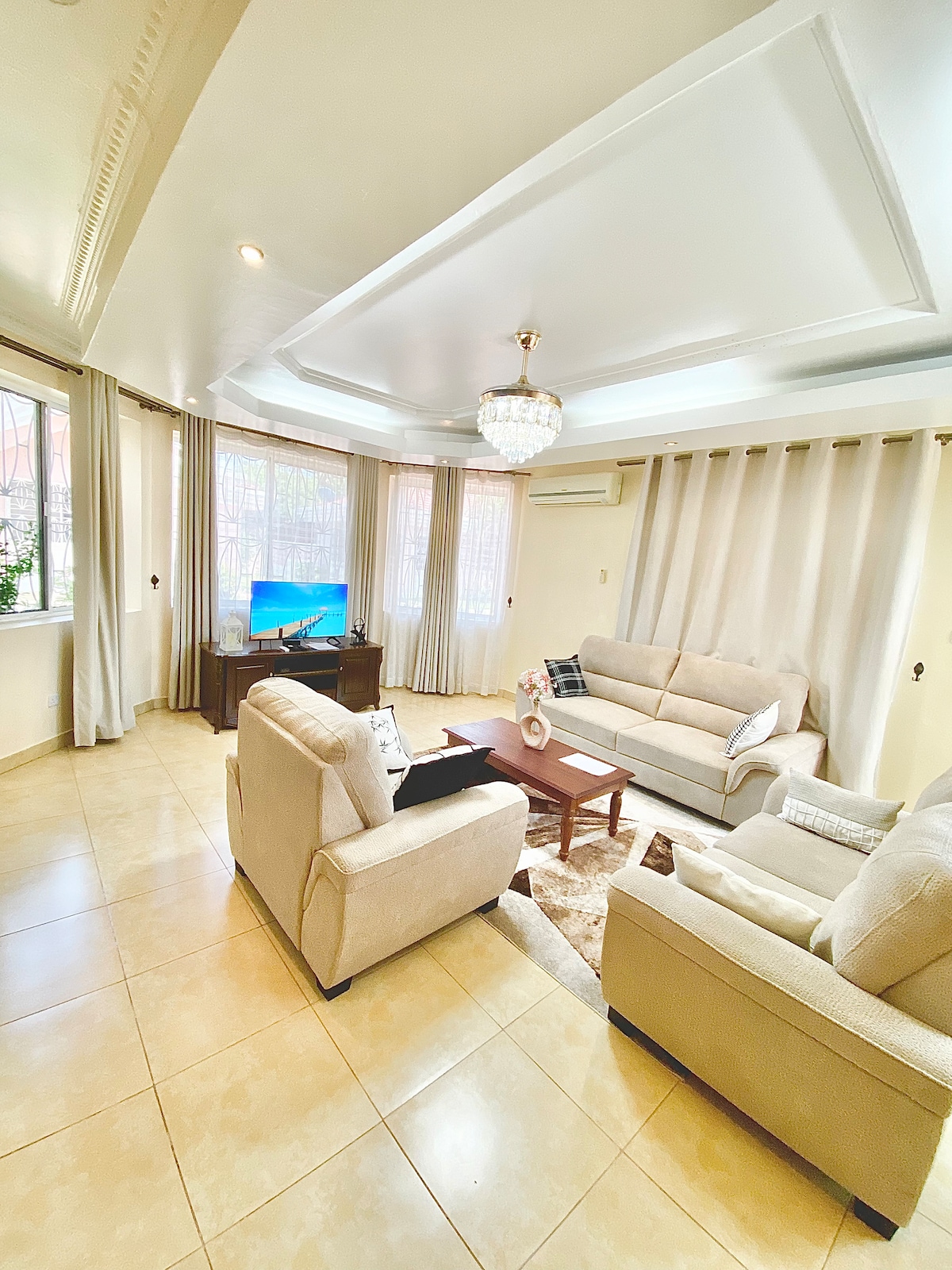 Tangkilikin ang Ubalozi Luxury Villa para sa dagdag na kaginhawaan na may mga sophicated na modernong disenyo. Masiyahan sa mga komportableng higaan at sofa na may lubos na kaginhawaan. > Manood ng mga palabas at pelikula sa 75”TV free Netflix, YouTube, Amazon Prime, Showmax at Live Sports >Makaranas ng Mabilisang Wi - Fi at Bluetooth na naka - enable ang top notch sound system > 10 minuto lang papunta sa sentro ng lungsod, Beaches, Zanzibar ferry at Vibrant night life. >Sapat na Paradahan, bakuran sa likod ng hardin na angkop para sa BBQ. Masiyahan sa kaginhawaan at Luxury sa amin.