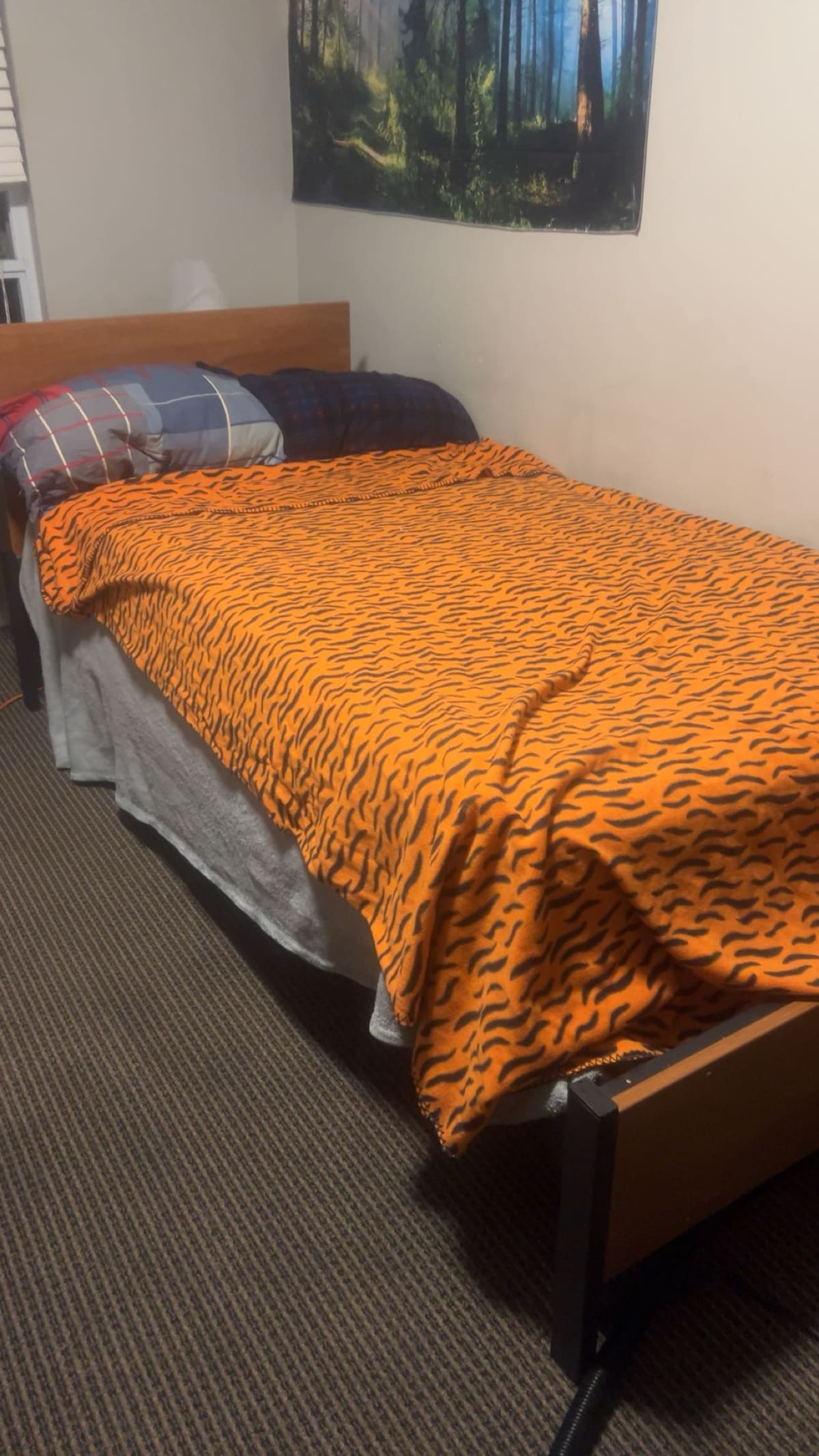 Need a place to stay for a night or two? Look no further! Our cozy bedroom is perfect for everyone! The bedroom comes with a built in ac powered through the unit with two mattresses on a single size frame. There is a working station and a drawer set up in the room also. You will have access to the kitchen living room and bathroom. There are 2 bathrooms in the unit one by the room and one accros the unit. Please message me with any inquiries or questions through the app.