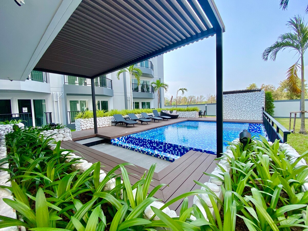 Gugulin ang iyong bakasyon sa mga white sand beach ng Mae Phim sa isang napakarilag na tropikal na bakasyunan. Ang bagong condo na ito, na direktang matatagpuan sa beach, ay nagbibigay sa bisita ng kumpletong karanasan sa upscale condominium. Kabilang ang pribadong beach access at mga amenidad ng estilo ng resort. Habang namamalagi sa amin, tangkilikin ang mga nakamamanghang tanawin at mga nakamamanghang sunset mula sa pribadong terrace. Perpektong lugar para magrelaks gamit ang isang tasa ng kape sa umaga o baso ng champagne sa gabi. Halina 't tuklasin ang mayamang kultura at kakaibang kagandahan ni Mae Phim.