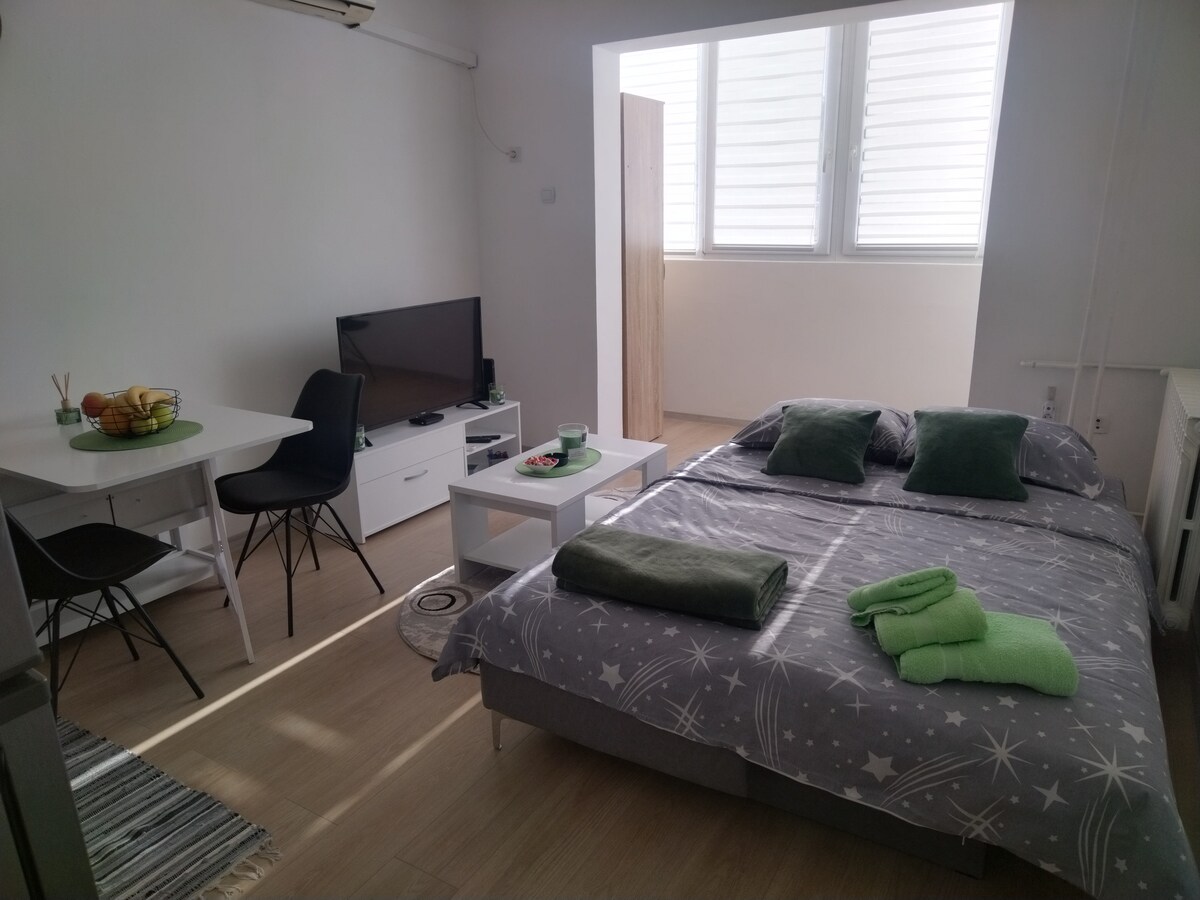 Make yourself at home in this cozy, boho-inspired studio right in the heart of Sombor. The apartment is fully furnished and thoughtfully designed, featuring a comfortable bed, well-equipped kitchenette, and a lovely private balcony with a charming view of the town—perfect for morning coffee or evening relaxation. Just steps away from local cafes, shops, and cultural spots, this is an ideal base for exploring everything Sombor has to offer.