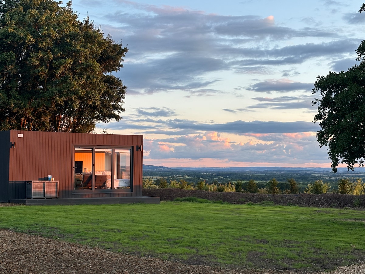 Be captivated by the sensational views across the North Cotswolds to the Malverns Nestled on the edge of Burton Dassett Park this tiny house is set at the stables amongst the animals at the Grove, with Llamas, Alpaca, horses & sheep on show around the estate This deluxe tiny container house features a standard double bed, full shower room and kitchenette. Blinds provide privacy The property is fairly close to the motorway so some road is possible when outside dependent on weather conditions.