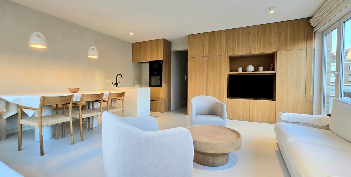DESIGN STUDIO NA MAY PRIBADONG PARKING SPACE (Mainam para sa mga Alagang Hayop) Ang StudioV ay isang mahusay na idinisenyo, arkitektura na pinong bakasyunan para sa mga creative, propesyonal, at mahilig sa disenyo na naghahanap ng liwanag, daloy, at pagkakaisa. Matatagpuan sa gitna ng Knokke, nag - aalok ang one - bedroom studio na ito ng sikat ng araw na terrace, minimalist na kagandahan, kumpletong kusina, marangyang linen, mabilis na Wi - Fi, at pribadong paradahan sa ilalim ng lupa. Pinapayagan ang mga maliliit na aso. 600 metro lang ang layo mula sa beach, na may mga cafe at gallery sa malapit. Prosecco sa pagdating.