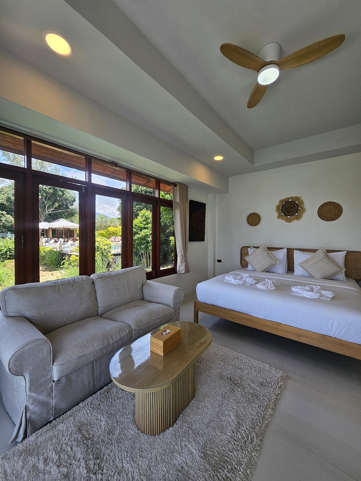 Ang Double Bed Villa na matatagpuan sa bagong binuksan na Peace Garden Resort ay isang perpektong pagpipilian para sa mga mag - asawa o kaibigan na naghahanap ng mapayapa at maginhawang pamamalagi. Masisiyahan ang mga bisita sa lahat ng amenidad ng resort, kabilang ang pool garden, bar, libreng WiFi at kapaki - pakinabang na kawani. Ang resort ay perpektong matatagpuan para sa madaling pag - access sa Bang Rak Beach (800 metro), 2 km mula sa Chaweng, 2.9 km mula sa Big Buddha at 3 km mula sa Fisherman's Village. 2 km lang ang layo ng Samui International Airport, kaya mainam ito para sa mga madaling pagdating at pag - alis.