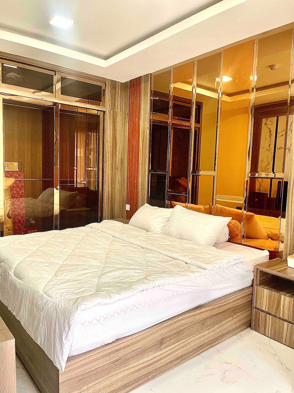 Maganda ang lokasyon ng espesyal na property na ito sa sentro ng lungsod. Sa kabaligtaran, ang apartment ay isang malaking shopping mall at ang Sofitel five - star hotel, na maginhawa para sa iyo na planuhin ang iyong pagbisita. - Nilagyan ng Samsung smart TV - Nilagyan ng kusina , refrigerator, at kettle - Nilagyan ng washing machine at hanger ng damit - Ang pinakamataas na sky bar ng Phnom Penh - Celeste at ang infinity pool sa rooftop kung saan matatanaw ang Mekong River - Nilagyan ng gym - Mga ibinigay na adapter Nilagyan ng mga pangunahing gamit sa banyo