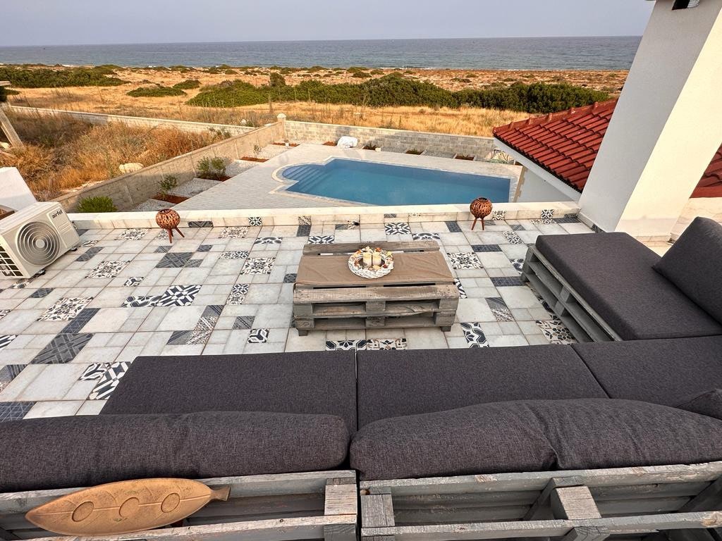 Found in the heart of Cyprus our tranquile place offers the following: - a retreat of calmness with no sound or neighbours - Private swimming pool - Rooftop patio lounging area - Grand patio facing the sea - Fully air conditioned rooms - A fireplace to enjoy the nighttime sea view - 100 metres to the beach - Full fiber wifi -4km distance toBafra tourismcentre and allCasinos Our extra services include: - 24/7 customer service - Airport transfer from Ercan airport - Day long trip of Famagusta