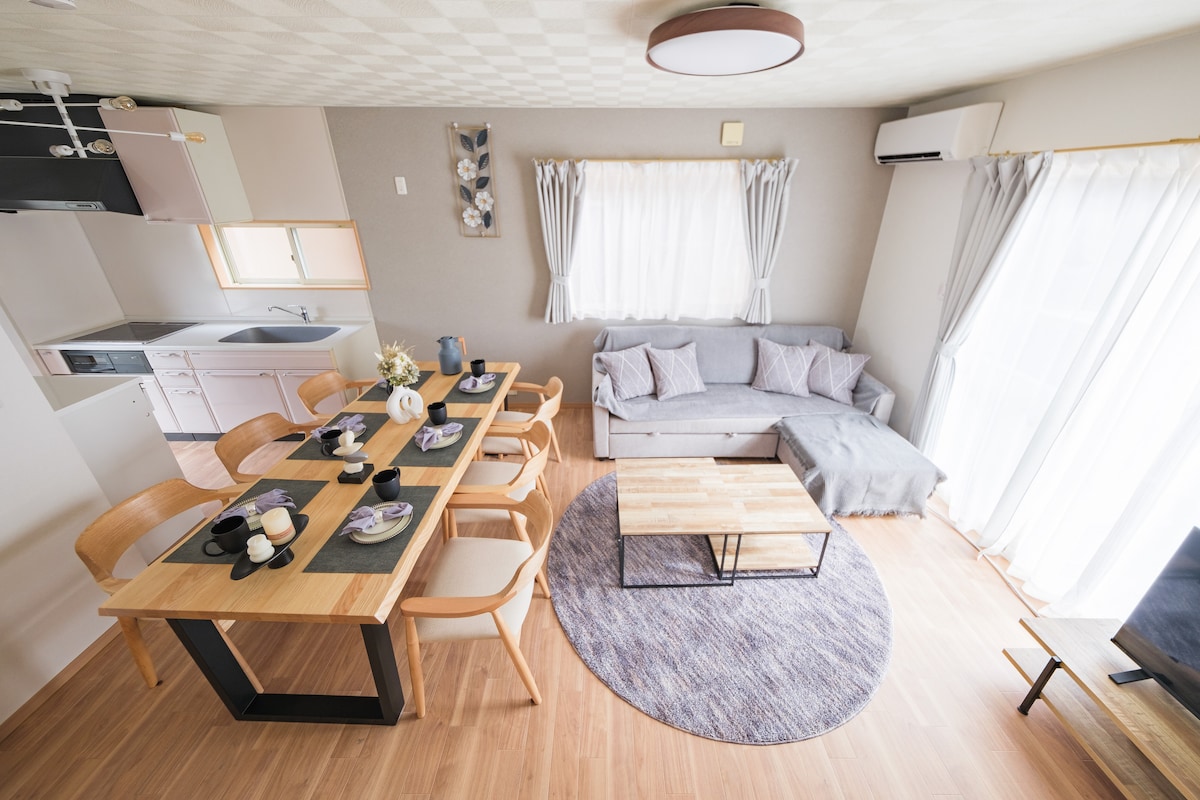 北高崎駅徒歩4分、高崎駅車で8分。 飯塚町の静かな住宅街にある2階建ての一軒家(70㎡)。 最大8名まで宿泊可能で、キッチン家電・調理器具も完備。 無料駐車場付(1台)で、家族旅行や長期滞在にも便利です。 <注意>駐車場2台目(無料)希望の方は、スペース狭いため 事前相談により受付致します。 Located in a quiet neighborhood of Iizuka-cho, just 4 minutes’ walk from Kita-Takasaki Station, this two-story 3-bedroom house (70㎡) is perfect for families and groups. Enjoy full privacy with free parking, a fully equipped kitchen, and restaurants within 1 min walk!