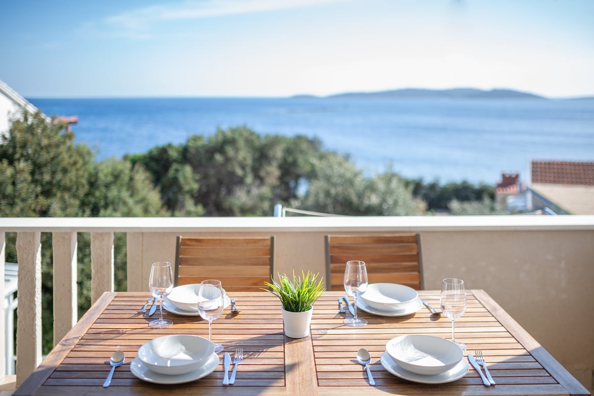 Ang aming kaakit - akit at maaliwalas na isang silid - tulugan na apartment ay matatagpuan sa unang palapag ng isang daang taong gulang na bahay sa tahimik na kalye na may 30 metro mula sa dagat. Ang bakuran ng korte na may mga kahoy na upuan at mesa na natatakpan ng ligaw na puno ng ubas ay ang tunay na chill zone.