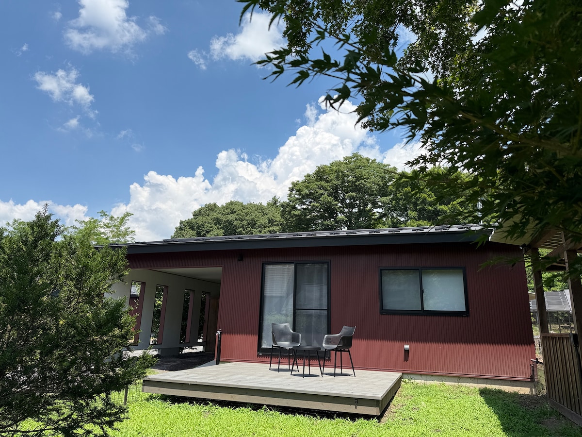 Ito ay isang maliit, tahimik, maliit na bahay - tuluyan. Ang deck ay sapat na malaki para sa hanggang anim na tao na magkaroon ng barbecue.Mangyaring tandaan na ang tirahan para sa apat na may sapat na gulang ay maaaring makaramdam ng kaunting makitid.Dahil ito ay isang kagubatan sa bundok, may mga insekto, atbp., ngunit ang guest house ay maingat na pinangangalagaan para sa pantaboy ng insekto, atbp. Pakitandaan kung ito ay lusob sa panahon ng iyong pamamalagi.Kung hindi ka magaling sa mga insekto, sa tingin ko ay medyo nag - aalangan ka, kaya 't magreserba.Sa taglamig, lumalamig sa lugar sa ilalim ng pagyeyelo. Pakitandaan na ang guest house na ito ay may kerosene stove, kerosene fan heater.Palaging available ang mga de - kuryenteng kasangkapan, pero kung masyadong marami ang gagamitin mo, gagana ang kagamitang pangkaligtasan (smart meter), kaya huwag gumamit ng maraming kasangkapan nang sabay - sabay. Mayroon ding metro ng tagas ng kuryente. Kung ang kuryente ay kumikislap, mangyaring gumamit ng mas kaunting kuryente (din, mangyaring kumonsulta sa amin tungkol sa karanasan ng resettlement sa kanayunan, atbp.). Para sa paglaganap ng nobelang coronavirus, ginagawa namin ang lahat ng aming makakaya para magdisimpekta at maglinis pagkaalis mo. Bago ka pumasok sa kuwarto, disimpektahan ang temperatura sa pasukan at disimpektahan ito gamit ang virus spray bago pumasok sa kuwarto.