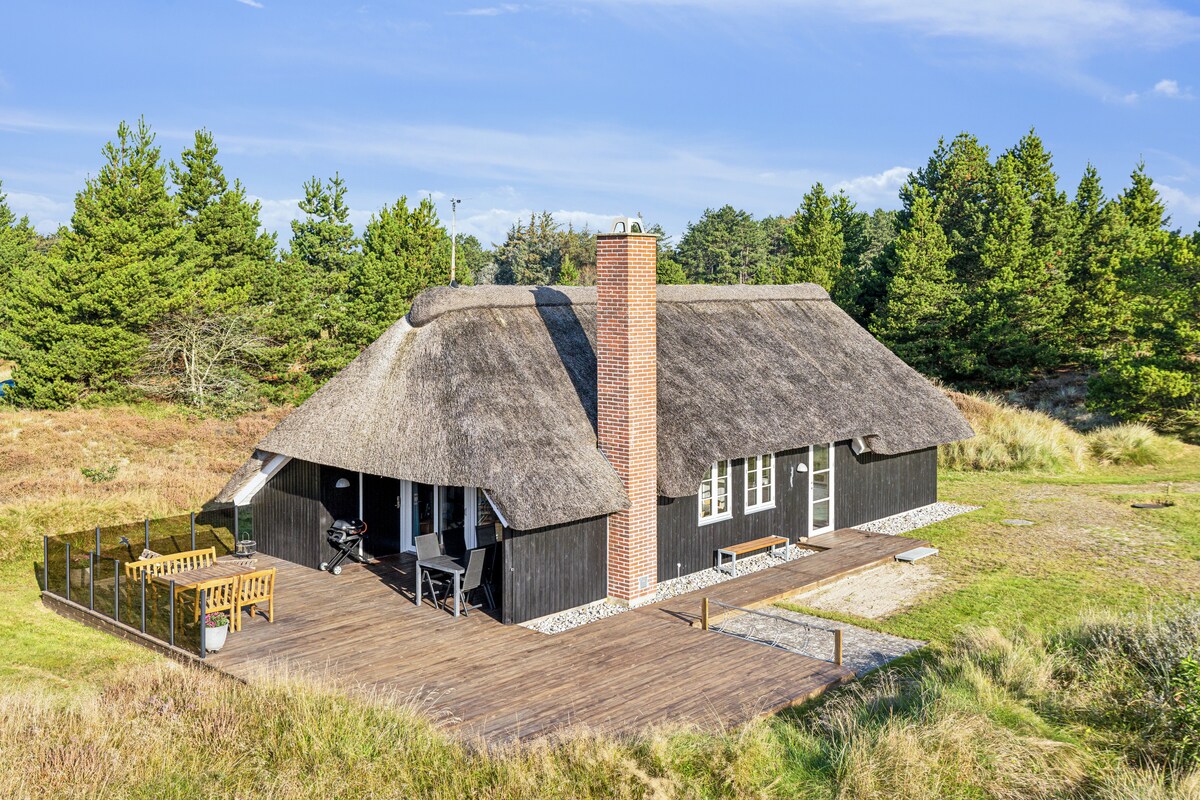 Holiday home with thatched roof in Fanø style with partially covered terrace and garden with shelter and annex. The house is located on a natural plot with various places to hang out and enjoy the nature. Sønderho and Sønderho Beach is within walking distance. The house has two bedrooms, a loft and a kitchen family room with access to terrace and outdoor kitchen with gas grill. If you drive an electric car, you can charge with type 2 or CEE connectors in the driveway. Welcome!