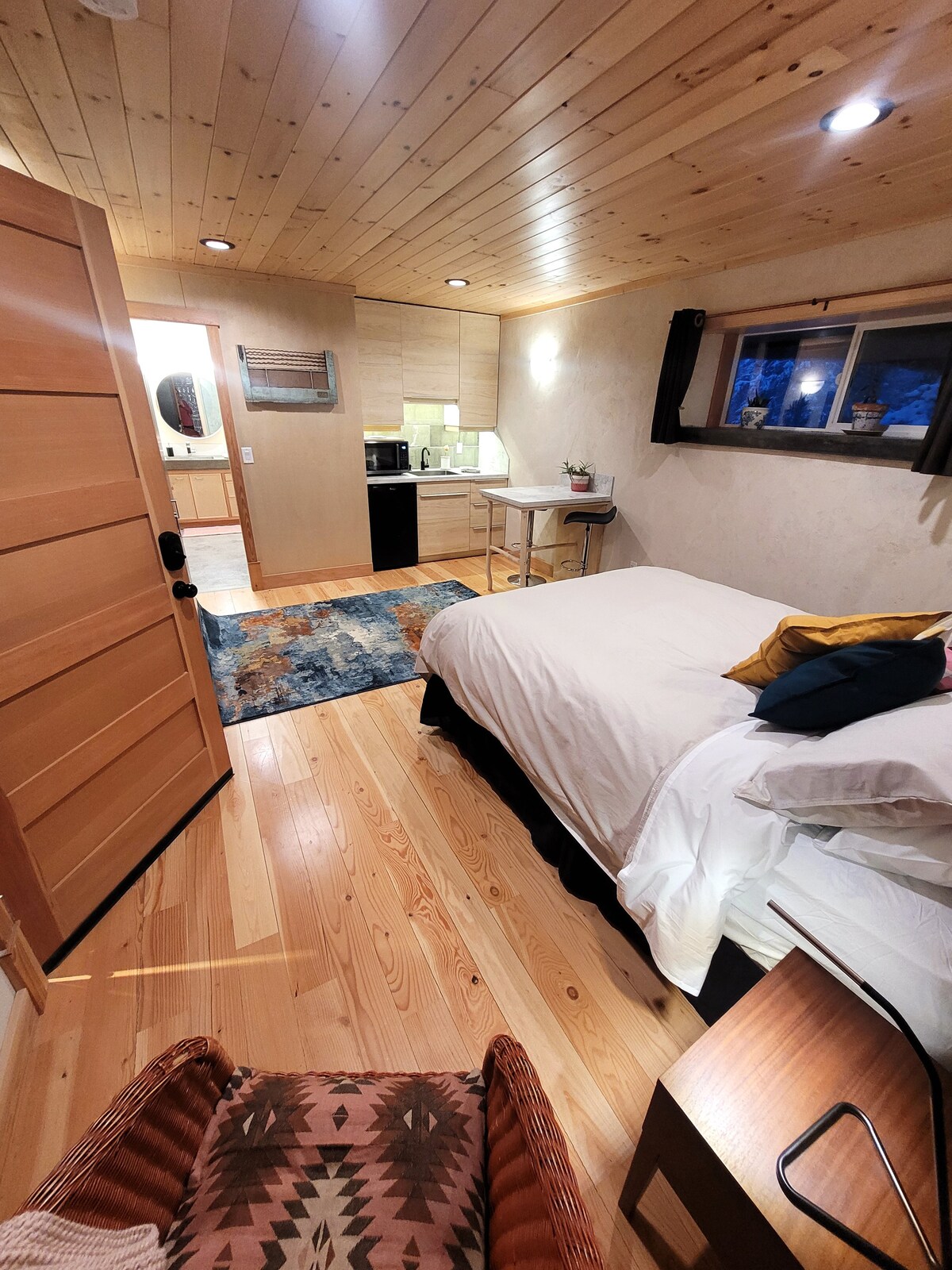 Kapag natutugunan ng mga palm spring ang isang mapayapang maaliwalas na liblib na kagubatan - maligayang pagdating sa aming Scandinavian escape. Ang pribadong suite ng estilo ng hotel na ito ay may sarili nitong hiwalay na pasukan, patyo at ito ang perpektong lugar para tamasahin ang kagandahan at katahimikan ng kalikasan habang 12 minuto lang ang layo mula sa Osoyoos at 30 minuto mula sa Mt. Baldie ski resort. Bumalik sa nakaraan gamit ang dekorasyon sa kalagitnaan ng siglo ngunit tamasahin ang marangyang paglalakad sa pag - ulan sa shower, workspace at mini kitchen para maghanda ng anumang pagkain.