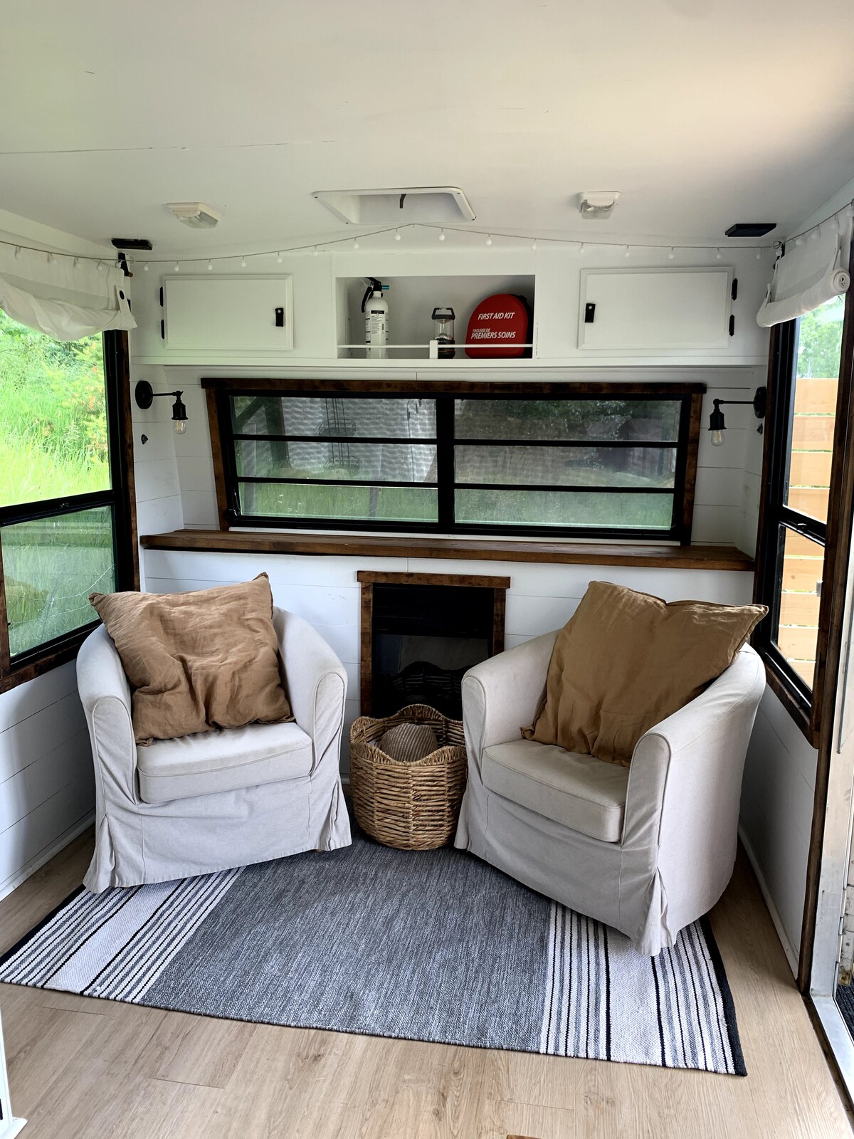 - private bedroom, bathroom, living room, entrance and deck - the living room has a small fridge, toaster, microwave, espresso machine, kettle, dishes, and a dining area - breakfast supplies provided (coffee, tea, cereals) - Endy queen bed + sofa bed & collapsible crib. Sheets are linen or organic coton from Canadian companies. - on-site, off-street parking - wifi - electric fireplace - smoking on the private outside deck - 10-minute walk to downtown, Lakeside Park, and groceries.