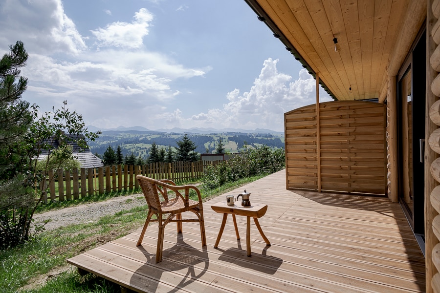 Domek jest położony na górskiej polanie, w pełni wyposażony, Chata ma wielkość 35 m2 kwadratowych jest w niej wszystko co potrzeba do normalnego funkcjonowania. Toaleta, prysznic, kuchnia połączona z pokojem dziennym i sypialnią, z pokoju dziennego można wyjść na balkon z którego widać całą polan i Tatry bielskie. Na dachu budynku jest duży taras gdzie w ładne dni można uprawiać jogę lub odpoczywać. Możliwość skorzystania z sauny i bali za dodatkową opłatą Bali 150 zl-2,5h Sauna 150 zl-2,5h