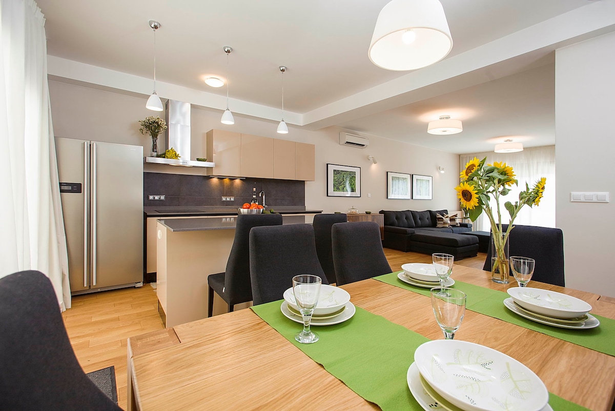 Brand New Loft Apartment na binubuo ng malaking kusina na may dining zone,dalawang silid - tulugan,dalawang banyo,laundry room at balkonahe kung saan masisiyahan ka sa magandang tanawin ng dagat at Pakleni Island. Mayroon kaming libreng paradahan sa harap ng bahay. Matatagpuan ang bahay sa tahimik na zone ,ngunit napakalapit sa lahat ng amenidad. 10 minuto lang ang layo ng sentro mula sa bahay at 5 minuto mula sa unang beach, mga supermarket at restawran.