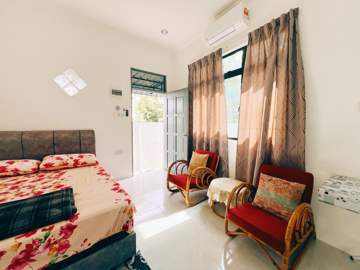 Maaliwalas at maluwag na bakasyunan ang homestay para sa 8 tao. May kumpletong muwebles, kasangkapan sa kusina, refrigerator, air-con, TV, water heater, water dispenser, at microwave. Matatagpuan malapit sa sentro ng lungsod ng Kota Bharu na may madaling access sa mga paboritong kainan at atraksyon ng mga lokal. Tandaang kasalukuyang walang wifi at washing machine sa patuluyan namin. Malugod na tinatanggap ang lahat na magkaroon ng kaaya - ayang pamamalagi sa aming tuluyan. Makipag - ugnayan sa amin para sa higit pang detalye.