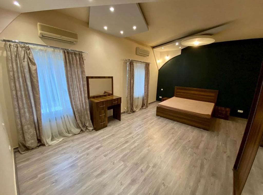 Nilagyan ang lahat ng: Refrigerator, washing machine, gas stove, oven, air conditioner, vacuum cleaner, microwave, iron, cooler. May tuloy - tuloy na mainit at malamig na tubig. Hindi naayos mula noong huling pag - aayos ng kosmetiko. Kung kinakailangan, puwede kaming magdagdag ng sanggol na kuna kung kinakailangan. Maluwang at ligtas na bakuran na puno ng mga puno at palaruan ng mga bata. Matatagpuan sa loob ng maikling distansya ng mahahalagang imprastraktura: Wholesale/retail/food market (petak) - 10 minuto