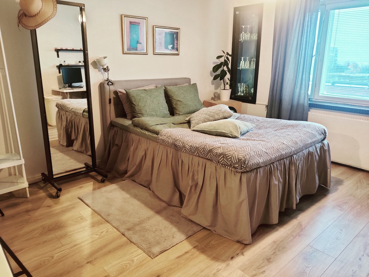 Maligayang pagdating sa aming maluwang na gusali ng apartment sa Hamina Horseha! Matatagpuan ang unang palapag na modernong inayos na apartment na ito sa tahimik na lugar na malapit lang sa sentro ng Hamina. Tinitiyak ang lugar ng pagtulog mula sa iba pang bahagi ng tuluyan na may dingding na salamin. Pinapayagan ng sala at kusinang may kumpletong kagamitan ang komportableng setting para sa pamamalagi. Nag - aalok ang tuluyang ito ng komportableng pamumuhay, na pinagsasama ang modernong kaginhawaan at likas na kapaligiran! Humingi ng quote para sa mas matatagal na pamamalagi!