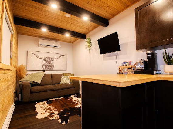This place is truly one of a kind. Ocean front tiny house cabin situated directly on the Northumberland Straight. You will witness million dollar sunsets/ sunrise while relaxing in an outdoor hot tub. Beach access. Cet endroit où séjourner est vraiment unique en son genre. Cabine de petite maison en bord de mer située directement sur le détroit de Northumberland. Vous assisterez à des couchers de soleil et des levers de soleil extraordinaire tout en relaxant dans un bain tourbillon extérieur.