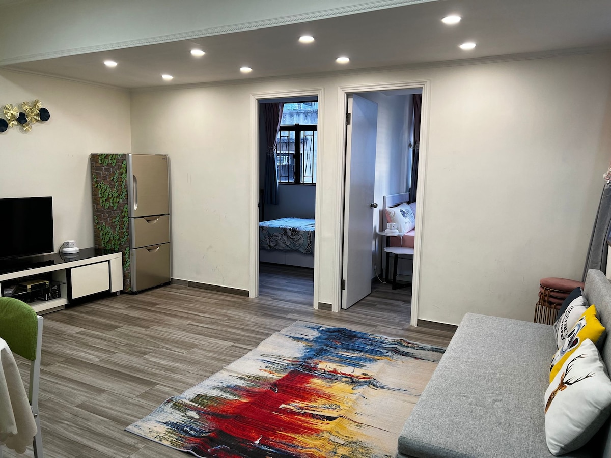 Welcome sa komportableng 3 kuwarto at 1 sala sa Hung Hom!Matatagpuan ito sa sentro ng lungsod, na may kumpletong pasilidad, madaling puntahan, at perpekto para sa mga pamilya, kaibigan, o maliit na grupo.Ang pangkalahatang estilo ng bahay ay mainit at komportable, maluwag ang sala, at ang tatlong silid-tulugan ay maaaring magbigay ng mas mahusay na espasyo sa pagpapahinga sa 5–6 na bisita.May kabuuang apat na higaan, isang malaking higaan na 1.2 * 2m, isang katamtamang higaan na 1 * 2m, isang maliit na higaan na 0.9 * 1.84m, at isang natutuping higaan sa sala na 1 * 2m. Plano mo mang maglibot sa lungsod, dumalo sa mga eksibisyon, bisitahin ang mga kamag‑anak, o maglibot sa Hong Kong, makakabalik ka nang komportable sa "tahanan" mo pagkatapos ng isang araw na puno ng gawain. Wala pang 5 minutong lakad ang layo ng istasyon ng subway mula sa ibaba, at 3 minutong lakad ang layo ng istasyon ng bus ng A25 papunta sa airport.