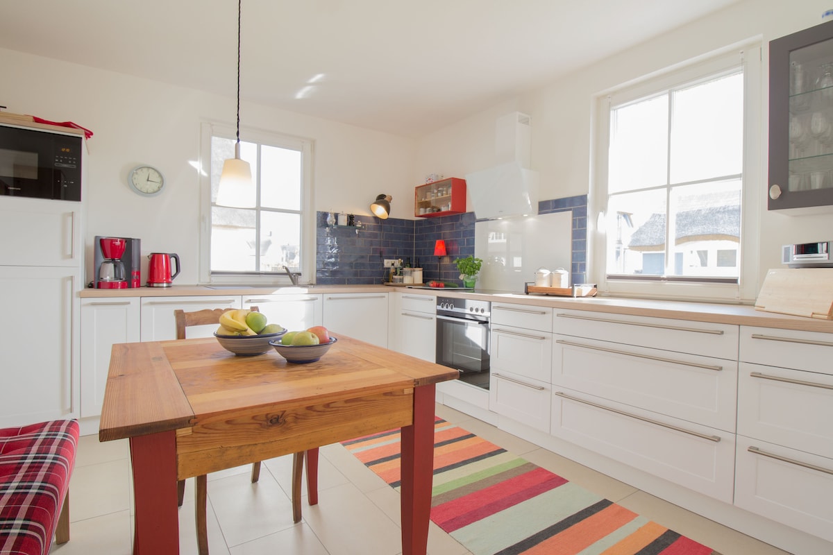 Ang Ferienhaus Muscheltaucher (living space 80 sqm) ay isang thatched roof house na may underfloor heating sa buong bahay, fireplace at sauna. Itinayo noong 2020. May mga upscale na amenidad ang bahay at may masarap at komportableng kagamitan. Ang pag - init at mainit na tubig ay ibinibigay ng isang heat pump, na pinapatakbo ng berdeng kuryente ng EWS Schönau. Libreng access sa Internet (WLAN), NETFLIX. Bahay na walang paninigarilyo na walang hayop.